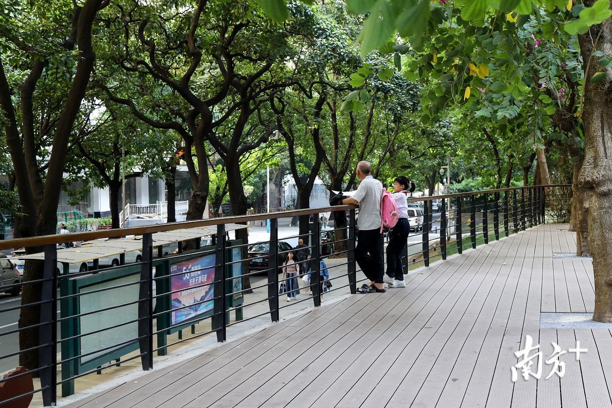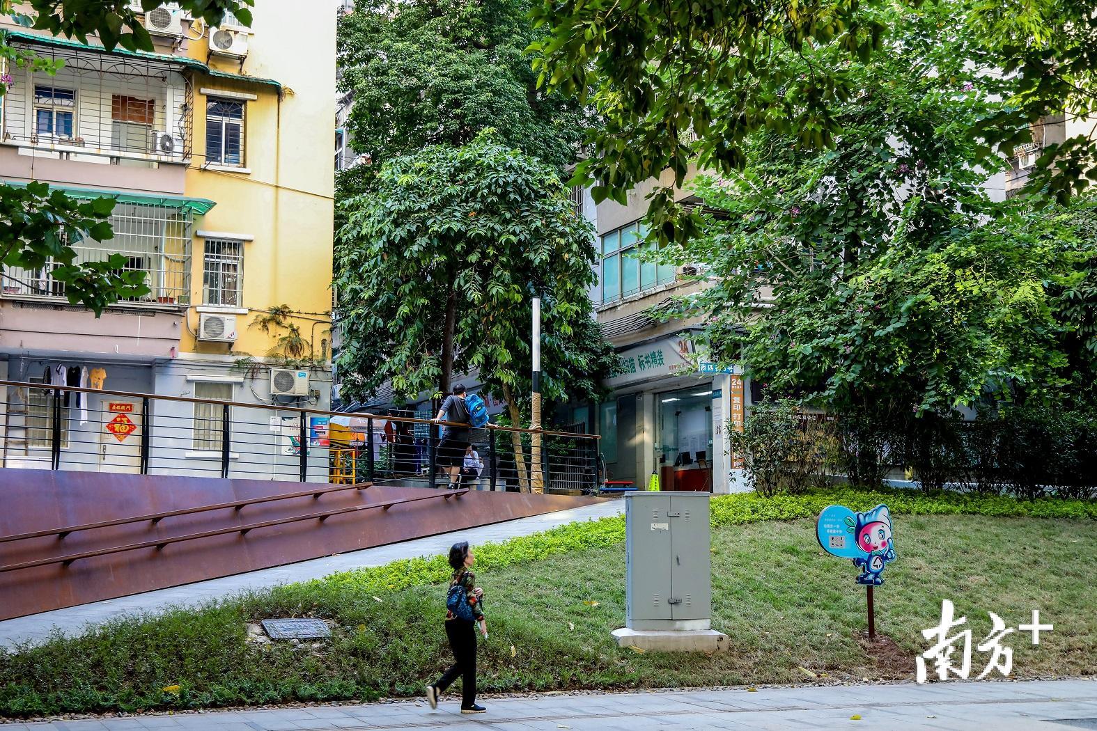 城市变化在细微处,群众的幸福感洋溢在脸上。如今,斜坡上种满临低矮植物,从小区往下看视线通透。几棵大榕树仍然保留着,树下改造成了林下空间。“改造后的斜坡很方便,特别是老人和带小孩的妈妈。”平台上,街坊张女士和儿子正在打羽毛球。“我放学之后都来打羽毛球和跳绳,好舒服。”一旁的小男孩凑过来补充。