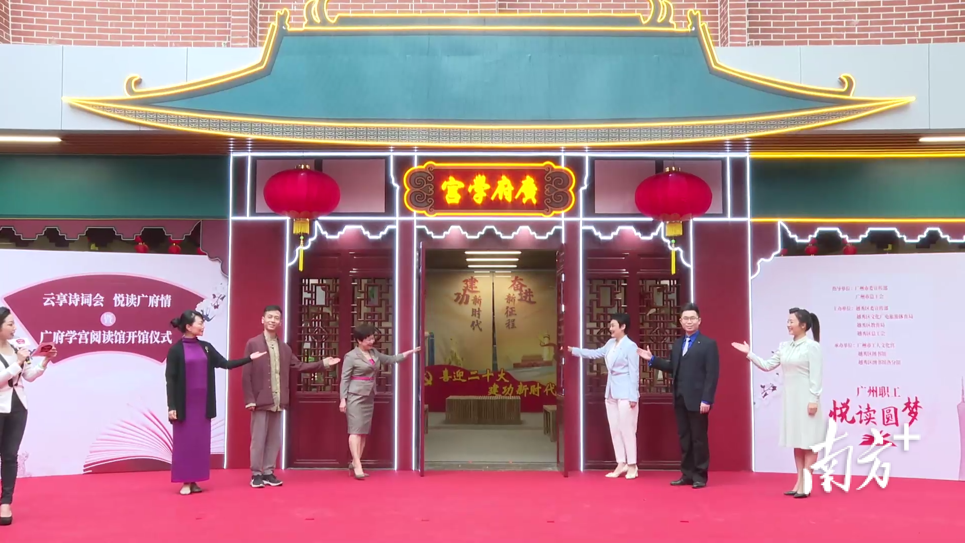 活动中,越秀区的第100家图书馆——“广府学宫阅读馆”正式开馆,该馆由广州市工人文化宫与越秀区图书馆合作共建,由此,越秀区成为广州首个图书馆“百馆之区”。“广府学宫阅读馆”是广州职工“悦读圆梦”品牌建设的重要举措,市、区总工会将加强共建合作,力求打造沉浸式阅读体验的公共文化空间,进一步讲好广府学宫故事,为广大职工群众提供优质的文化服务。