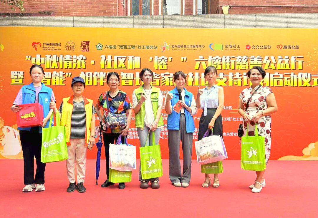 紧密围绕今年“中华慈善日”及“羊城慈善月”的主题,关注社区居民对美好生活的期盼与实际需求,9月11日,在广州市越秀区民政局、广州市慈善会指导下,广州市六榕街道办事处、六榕街公共卫生委员会、六榕街道旧南海县社区联动六榕街“双百工程”社工服务站,开展“中秋情浓·社区和‘榕’”六榕街慈善公益行暨“智能”相伴失智长者家庭社区支持计划启动仪式,“益”起过中秋。