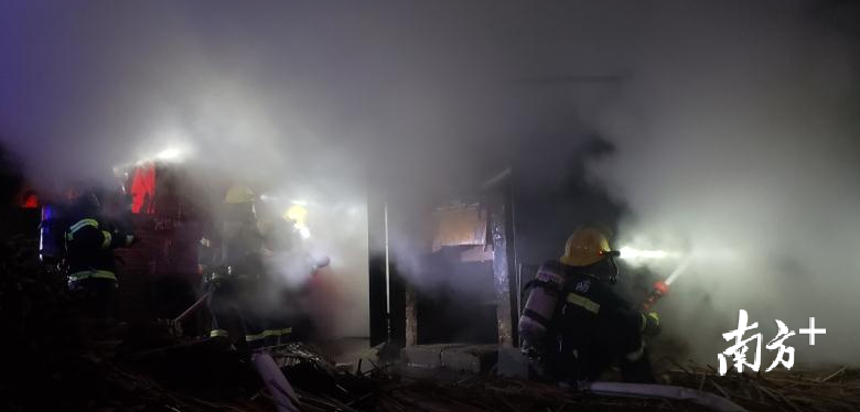 中队到达现场后侦查发现,起火部位是该酒厂的木材烘干房内,房间存有大量的木材,烘干房内火势正处于猛烈燃烧阶段,熊熊火焰伴随着滚滚浓烟从门口冒出。“嘭,嘭,嘭”木材燃烧的声音波荡起伏,情况十分紧急。
