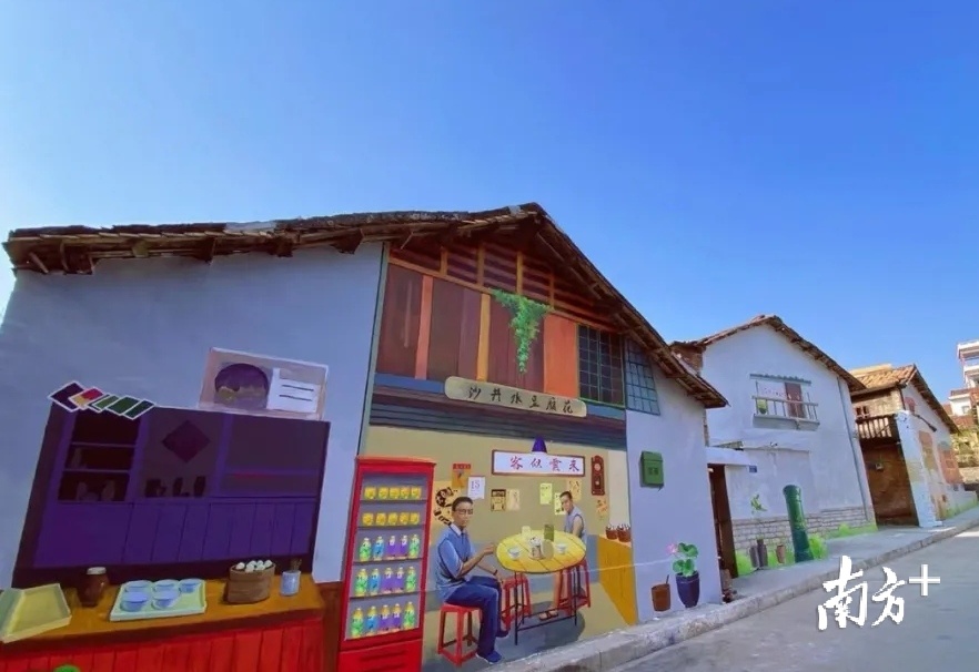 “互动打卡墙绘”是东坑镇井美村特色精品示范村创建的其中一个项目。相关墙绘由专业人士结合当地乡村特色和人文元素进行提炼创作。漫步在井美村旧巷小道上,一幅幅题材新颖、色彩斑斓的互动打卡墙绘在眼前徐徐展现,其中沙井豆腐花、昌隆早餐店、腊味煲仔饭等主题墙绘,更是散发着浓厚的乡土气息和传统文化气息。