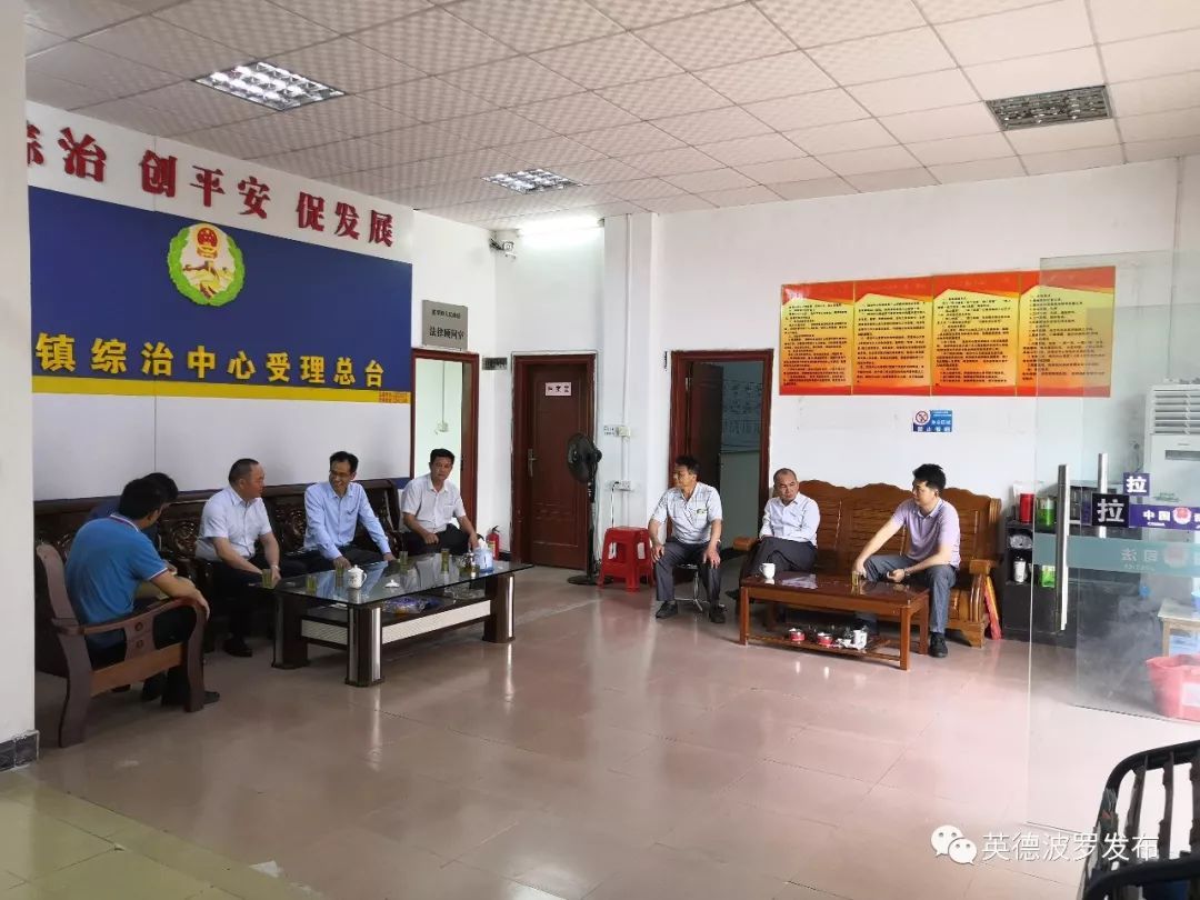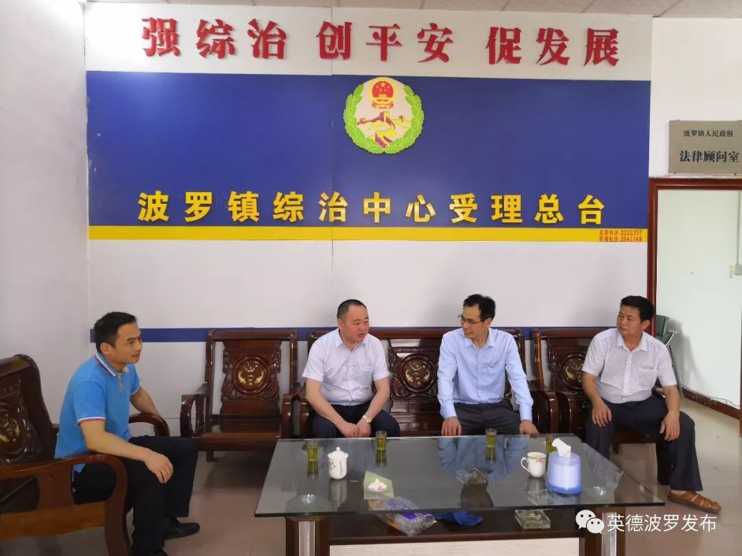 2019年5月10日下午,清远市住建局副局长罗幸等一行在波罗镇党委书记李龙的陪同下调研指导波罗镇综治工作。