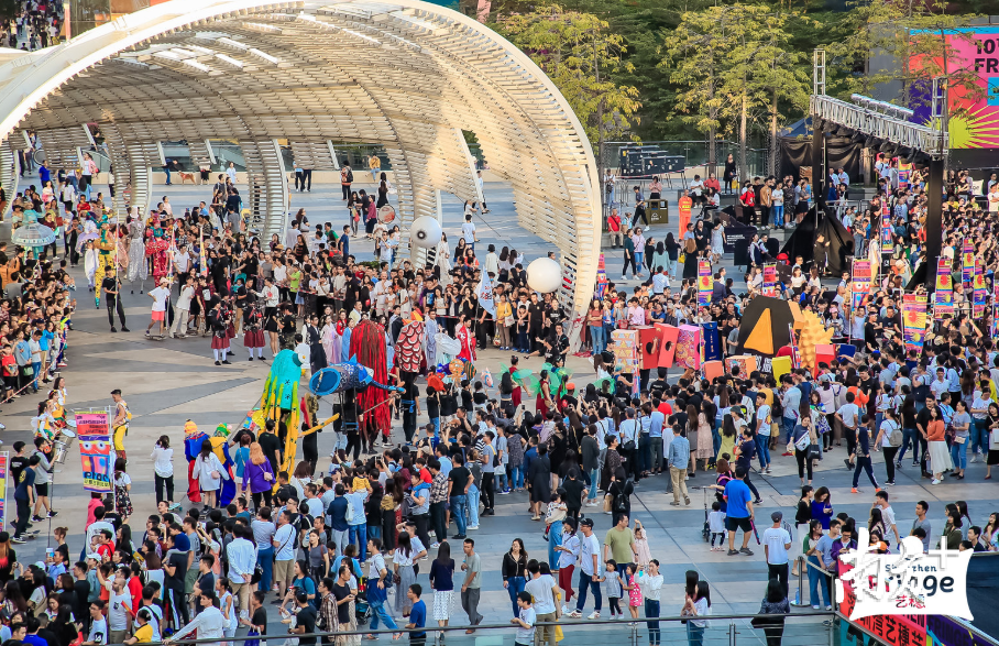 在南山文体中心剧场、在深圳湾大街街头、在万象天地、在海德广场,听乐队演唱、看先锋戏剧、偶遇活雕塑、欣赏肢体舞蹈……整个南山区,人人皆是艺术,处处遍是舞台。
