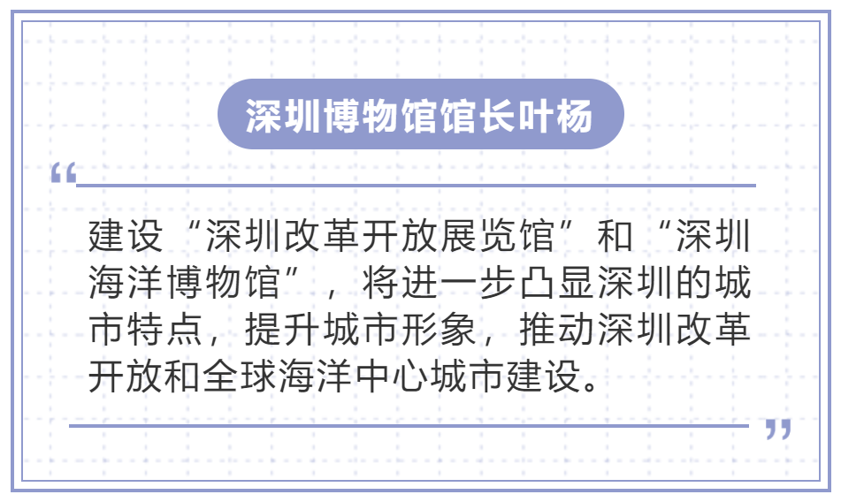 在多次会议下,“新十大文化设施”建设模式确定,并明确由9位市领导分别挂点“新十大文化设施”。这是一批高起点规划、高标准建设、高品质配套、高水平运营的文化场馆,将被努力打造成为文体设施的时代精品、城市杰作、湾区地标。譬如中国国家博物馆·深圳馆以“体现国家文化话语权、辐射港澳及东南亚”为定位,将打造成国际一流、中国特色的国家级大型综合博物馆。
