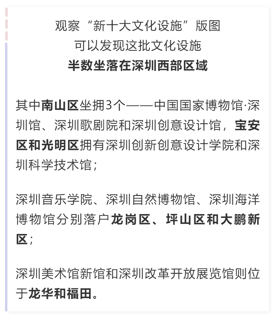 记者发现,新十大文体设施的分布与深圳的城市特点、区域特色和文化发展紧密相连。