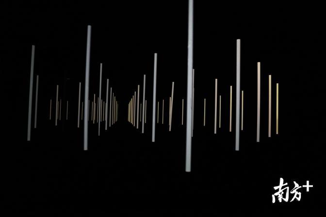 以不锈钢钢板镂空裁切成线,相互交叠,形成一个虚实相交的多维度空间,艺术家周力的作品充满力量感;李林迪创作的《青铜火石》由古代绘画实践“甩墨”演变而成,你能想象这样的作品就藏在建筑的某一个角落、某一面墙壁上吗?