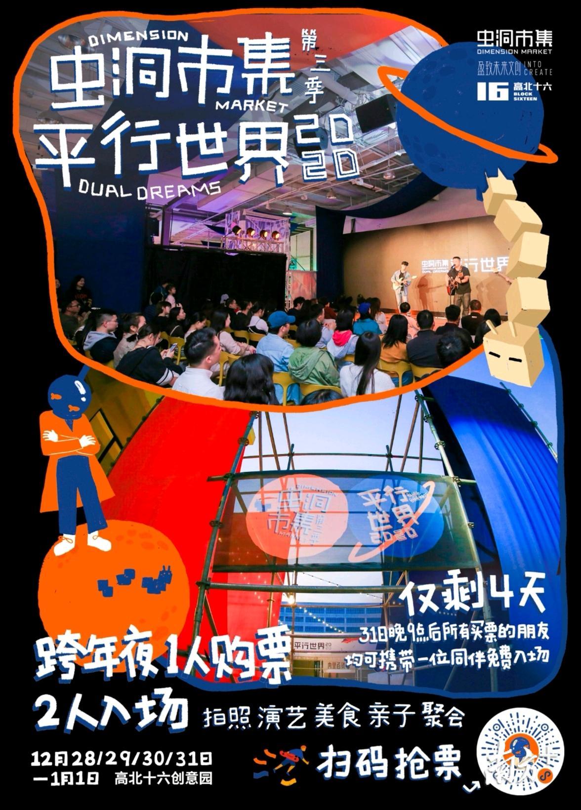 虫洞市集正在高北十六创意园进行,120+主题摊位、20+美食酒水、5天8小时不间断演艺、10+互动玩法,好玩好看等你来。