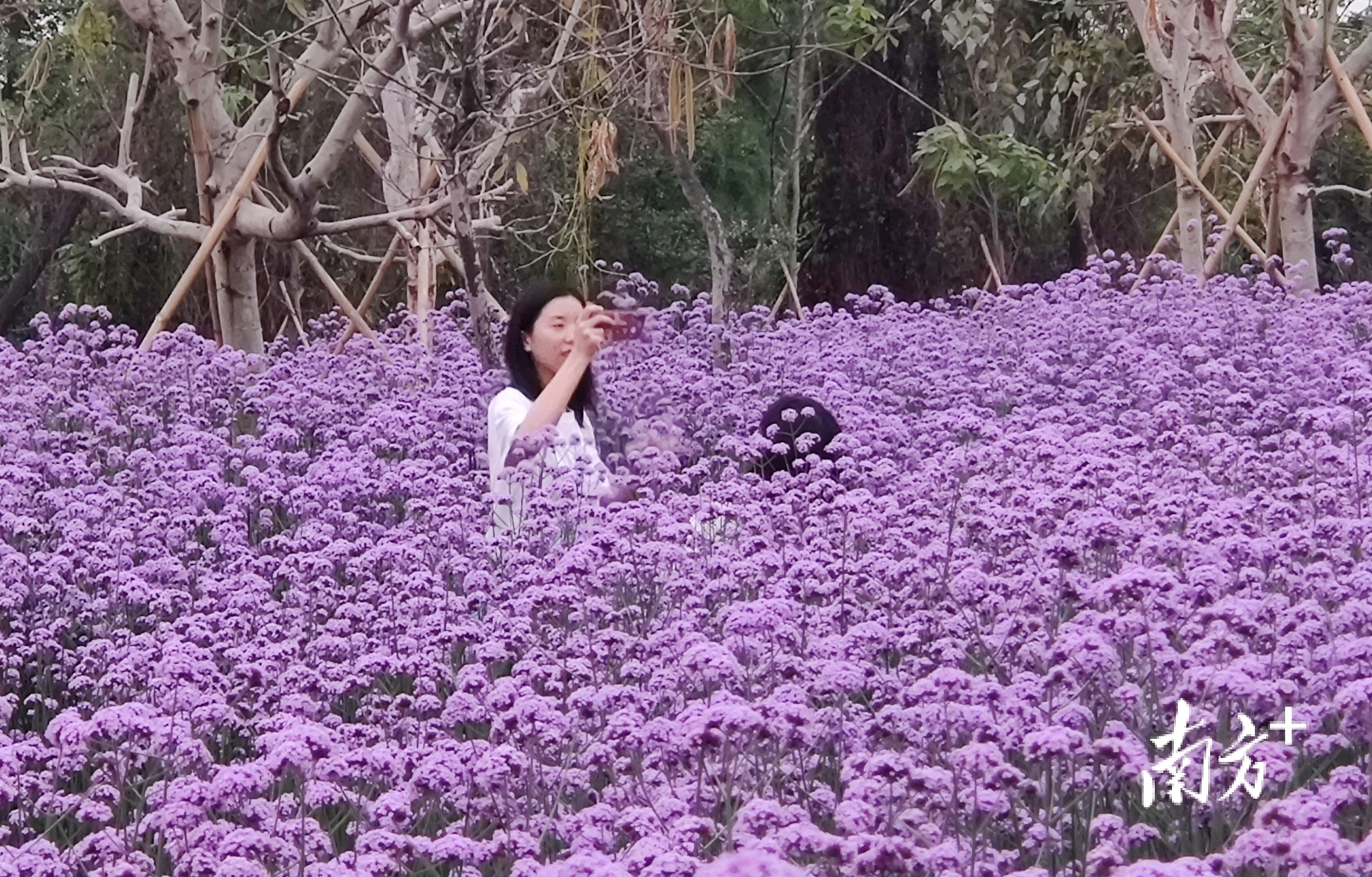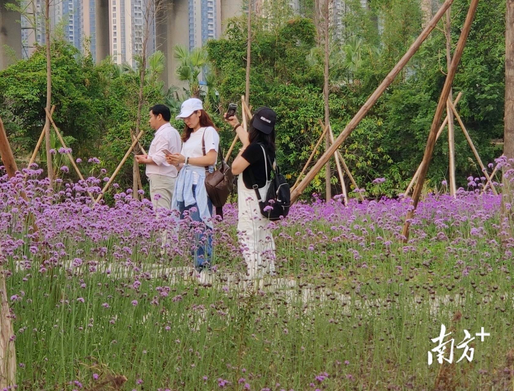 市民游客在花海中拍照打卡。戴惠甜摄