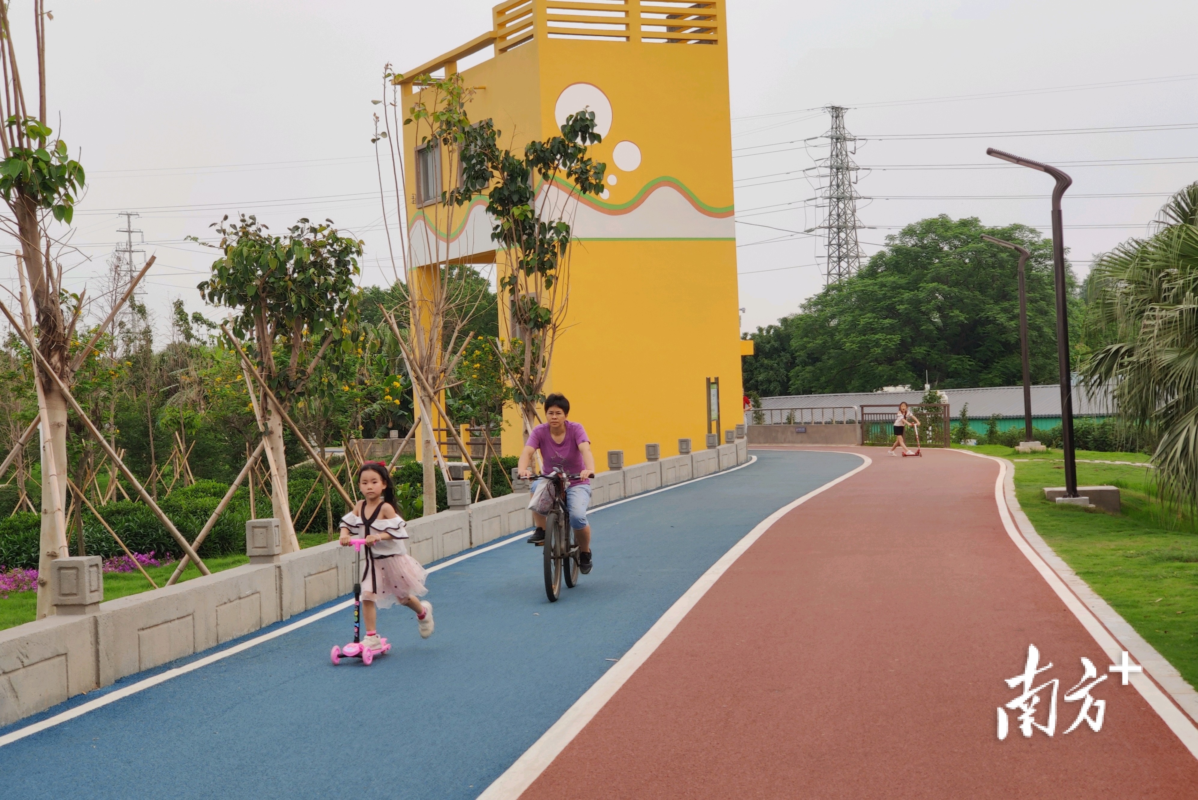 风景优美的乡村绿廊吸引不少小朋友骑行锻炼。戴惠甜摄
