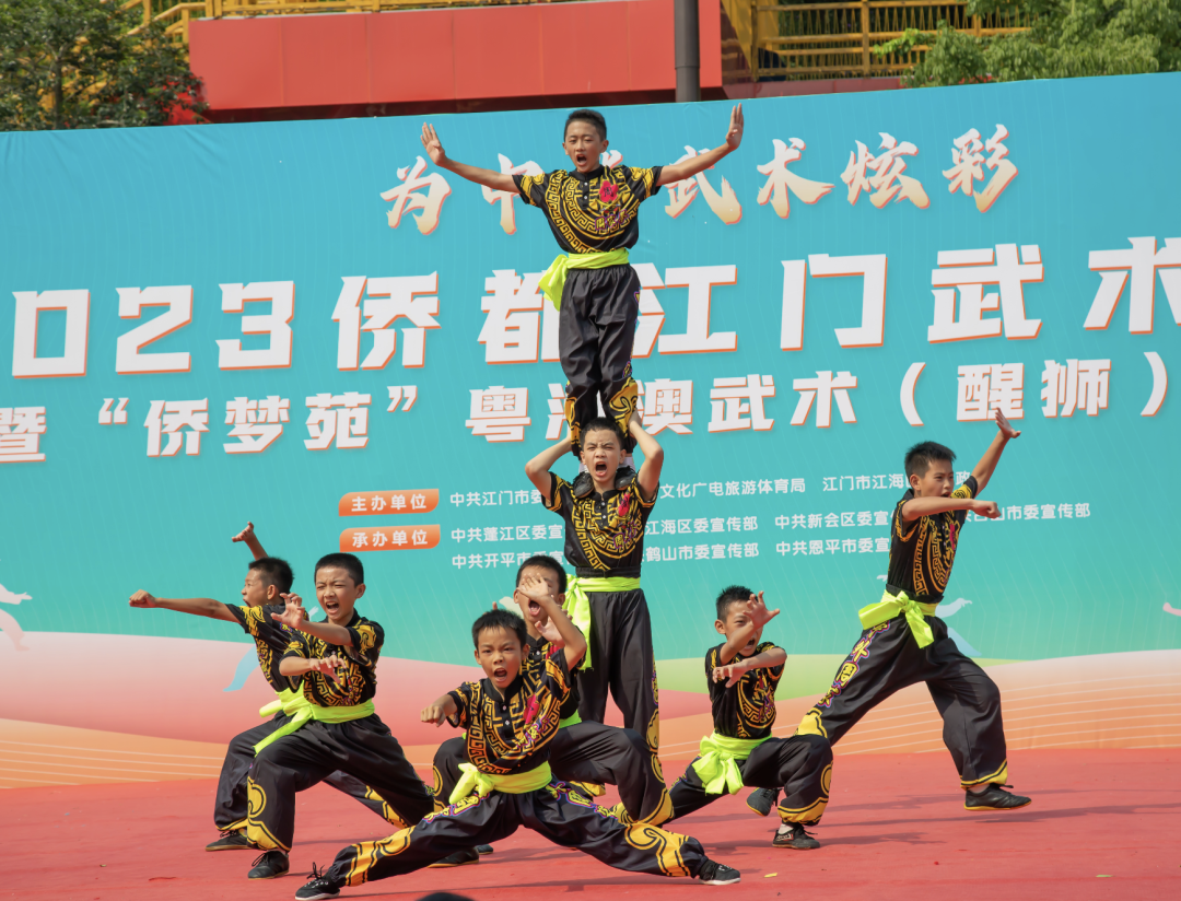 10月1日至3日,2023侨都江门武术展演暨“侨梦苑”粤港澳武术(醒狮)邀请赛、“江门圩日·侨都记忆”嘉年华等活动纷纷在江海举行,仅武术邀请赛便吸引海内外武术家、武术体育爱好者运动员1000多人齐聚一堂,为广大市民呈现醒狮耀中华、武术操表演、潮武风采秀、武术比赛项目,并主动连接海内外武术爱好者资源,用好武术“潮玩IP”、功夫“数字体验”功能,以创新潮流方式讲好全球华侨华人同根同脉的侨都武术故事,向全球分享了侨都武术的新时代魅力。