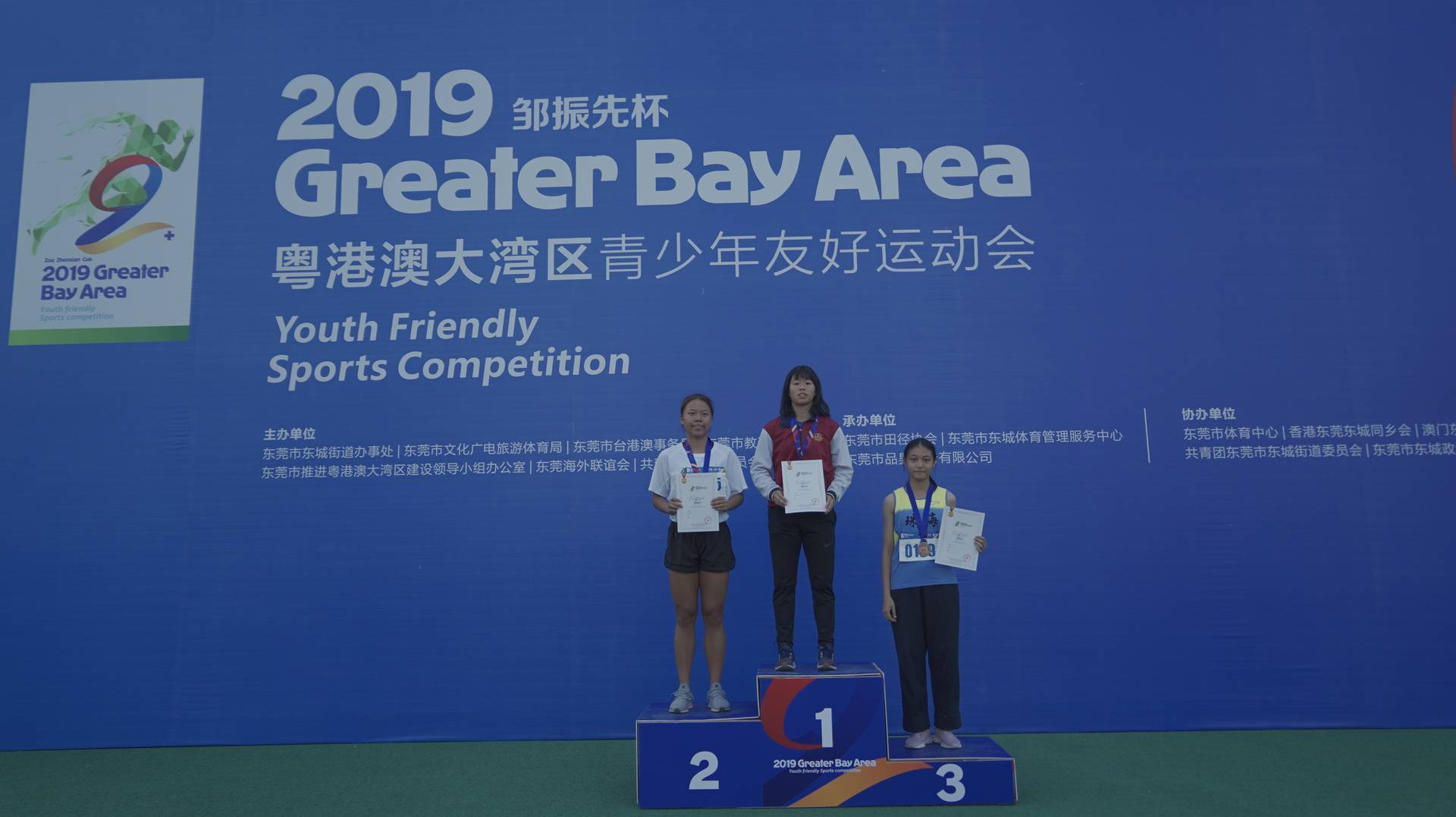 为期两天的2019年“邹振先杯”粤港澳大湾区青少年友好运动会正在东莞体育中心举行,来自广州、深圳、香港、澳门、珠海、中山、惠州、佛山、肇庆、东莞以及重庆、九江和镇江等共13个城市的608名运动员和教练员,以体育精神为媒,齐聚东莞,共同推动东莞青少年田径运动的发展和加强粤港澳青少年的交流合作。