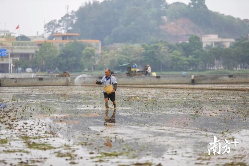 据介绍,稻田种植讲究土壤和施肥。一般在插秧前,都要先对土地进行人工施肥,为了能够让土壤变得更有营养成分,更适合秧苗成长。“土地和人一样,只有吃饱了,秧苗才能快高长大”一位正在农田里泼洒肥料的阿叔打趣地说。