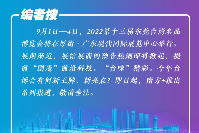 今年的东莞台博会,东莞台协东城分会将打造东城台商传承·创新馆,重点展现台商在东城的各类创新产业以及传承。今天,就让南方+带您提前了解一下东城馆的亮点吧!