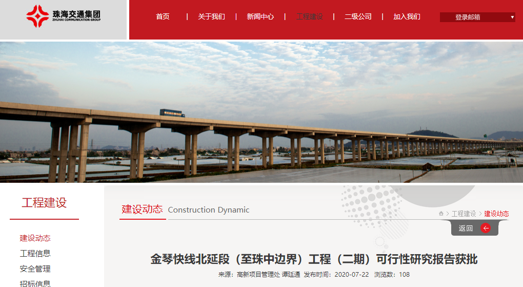 22日,珠海交通集团发布公告称,金琴快线北延段(至珠中边界)工程(二期)可行性研究报告获得珠海市发展和改革局批复,将力争今年底开工!