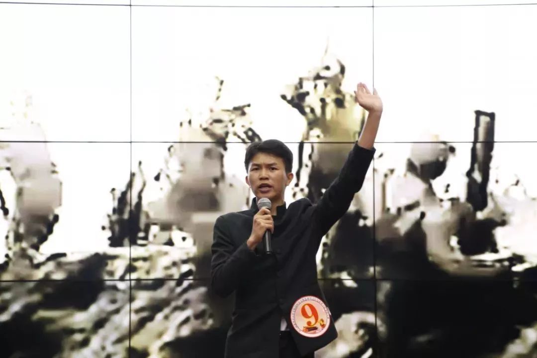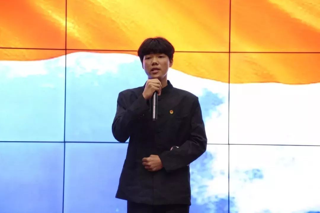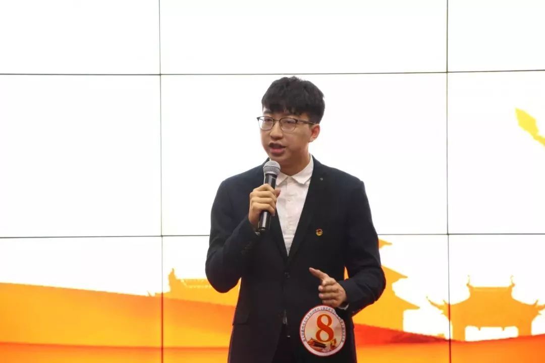 8号选手何正远以“一转眼九十年风雨历程,再回首,多少载坎坷艰辛”展开演讲。讲述了先辈们用一杆共产主义的大旗撑起了一个世纪以来华夏大地上的破碎的天空。将共产主义绚烂无比的信仰通通汇聚成了势不可挡的革命洪流。