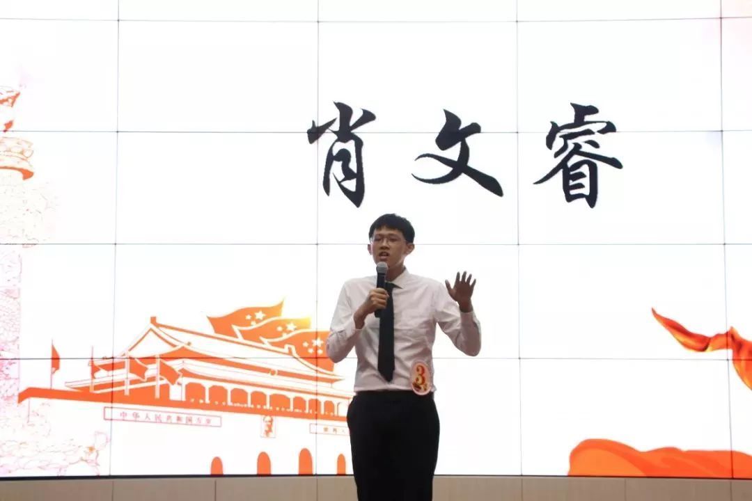 3号选手肖文睿以“红色精神与我们之间的联系”展开演讲,以自己在烈士陵园进行朗诵的事迹告诉我们,不管环境多么恶劣,只要有红色精神的激励,我们内心深处都会涌起一股热血,一场熊熊大火,红色精神指引我们永往前行。