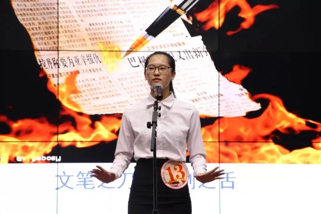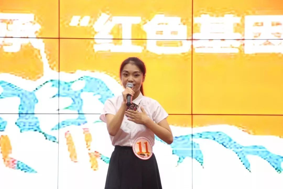15号选手杨丽婷以“传承红色精神,铭记红色内涵”展开演讲,选手讲到,中国近代经历了4个阶段的战争后取得了新民族主义革命的胜利。现在,我们脚下这片和平美好的土地下,是多少抗日先辈用炽热的鲜血换来的。告诉我们要珍惜当下的生活,努力奋斗,不要愧对先辈们的红色爱国之心。