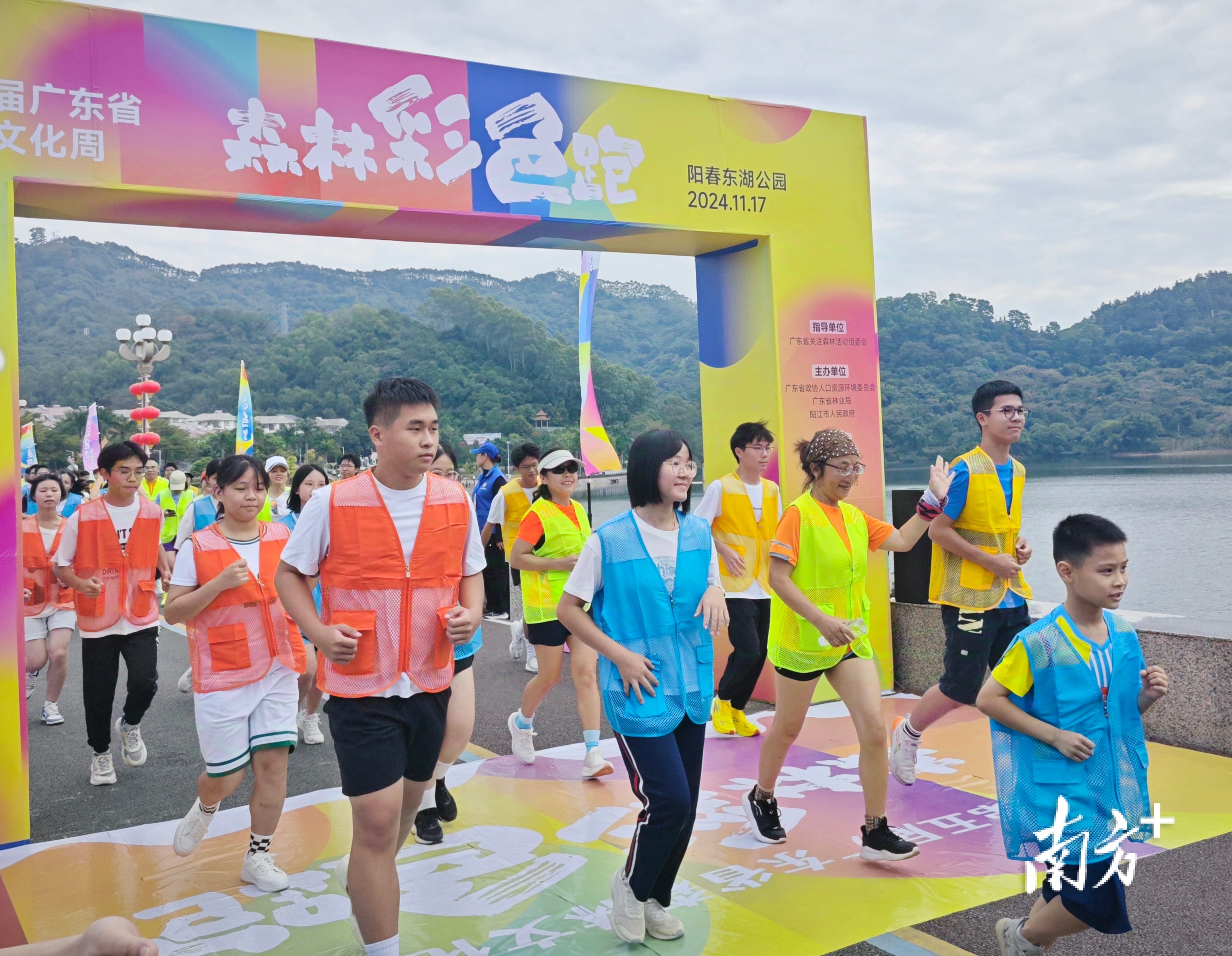 此外,当天举行的“森林彩色跑”活动也吸引了数百名群众参与。上午10点半左右,随着发令喇叭响起,大家沿着东湖绿道慢跑,感受阳春的自然风貌、森林文化。据悉,阳春东湖森林生态综合示范园集生态旅游、森林体验、自然教育、森林康养等功能于一体,打造出“一轴两环六区”的功能区域,已成为市民群众休闲好去处。