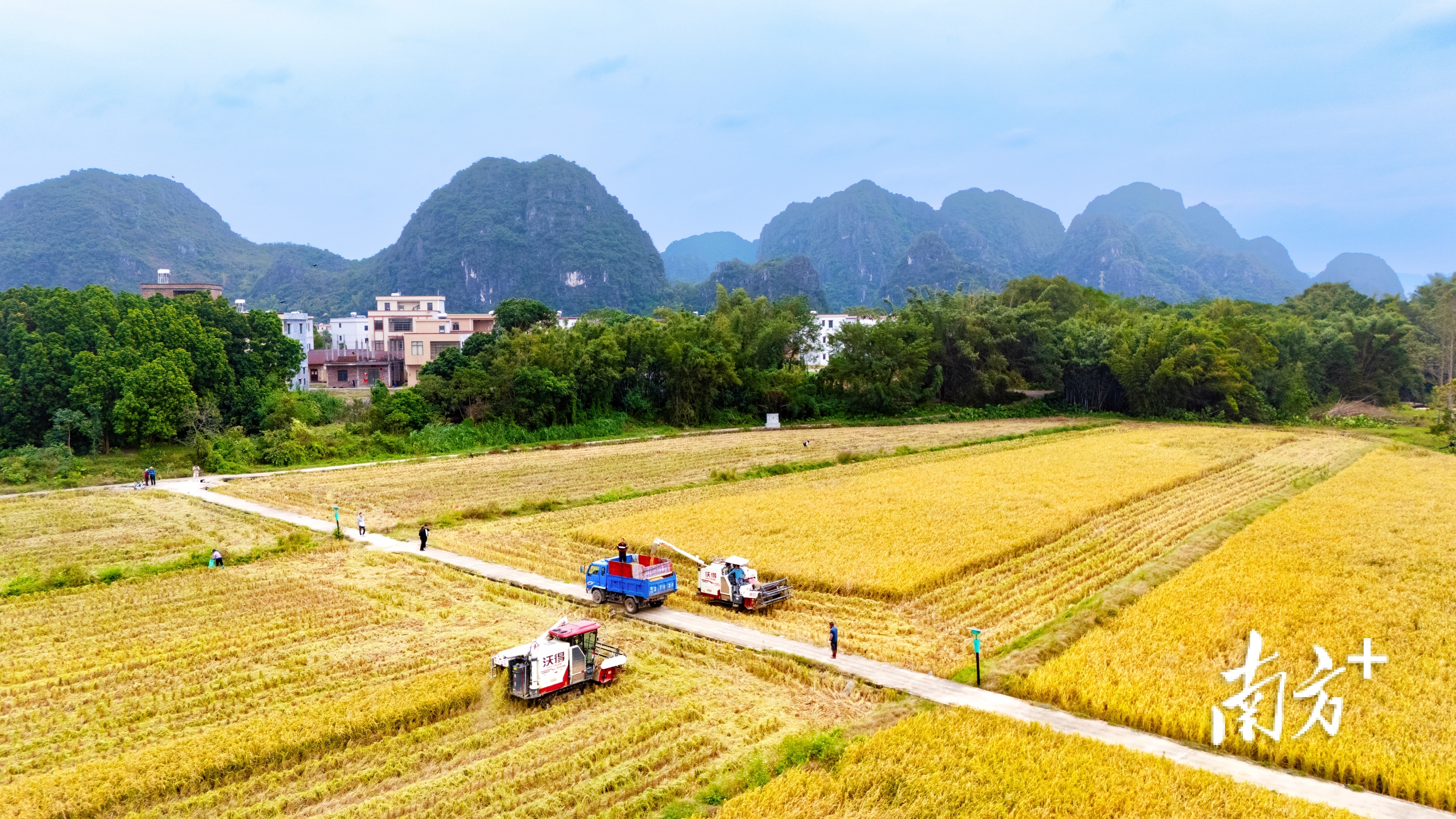 秋风送爽,稻浪飘香。当前,阳春市正值37.2万亩晚造水稻收割高峰,全市各地统筹调度现代化农机,利用晴好天气高效抢收,确保稻谷颗粒归仓。
