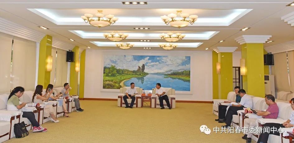 21日下午,阳春市副市长张奕文在市委迎宾厅会见了广东芒果文旅投资集团公司董事长陈兴及相关人员,双方就发展投资项目进了洽谈。