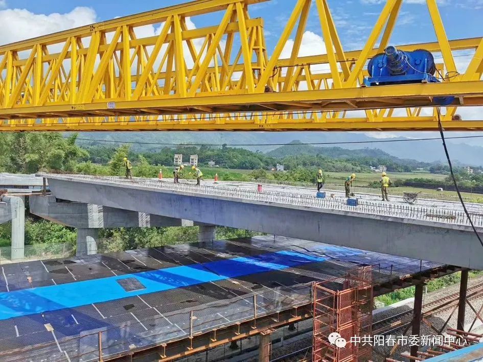 这次施工地点位于开春高速公路主线,是项目南星高架桥的重要组成部分,桥总长880.6米、共35跨、设20联,其中第16跨三茂铁路采用结构连续小箱梁,每组梁长35米、梁高1.8米、重133吨。
