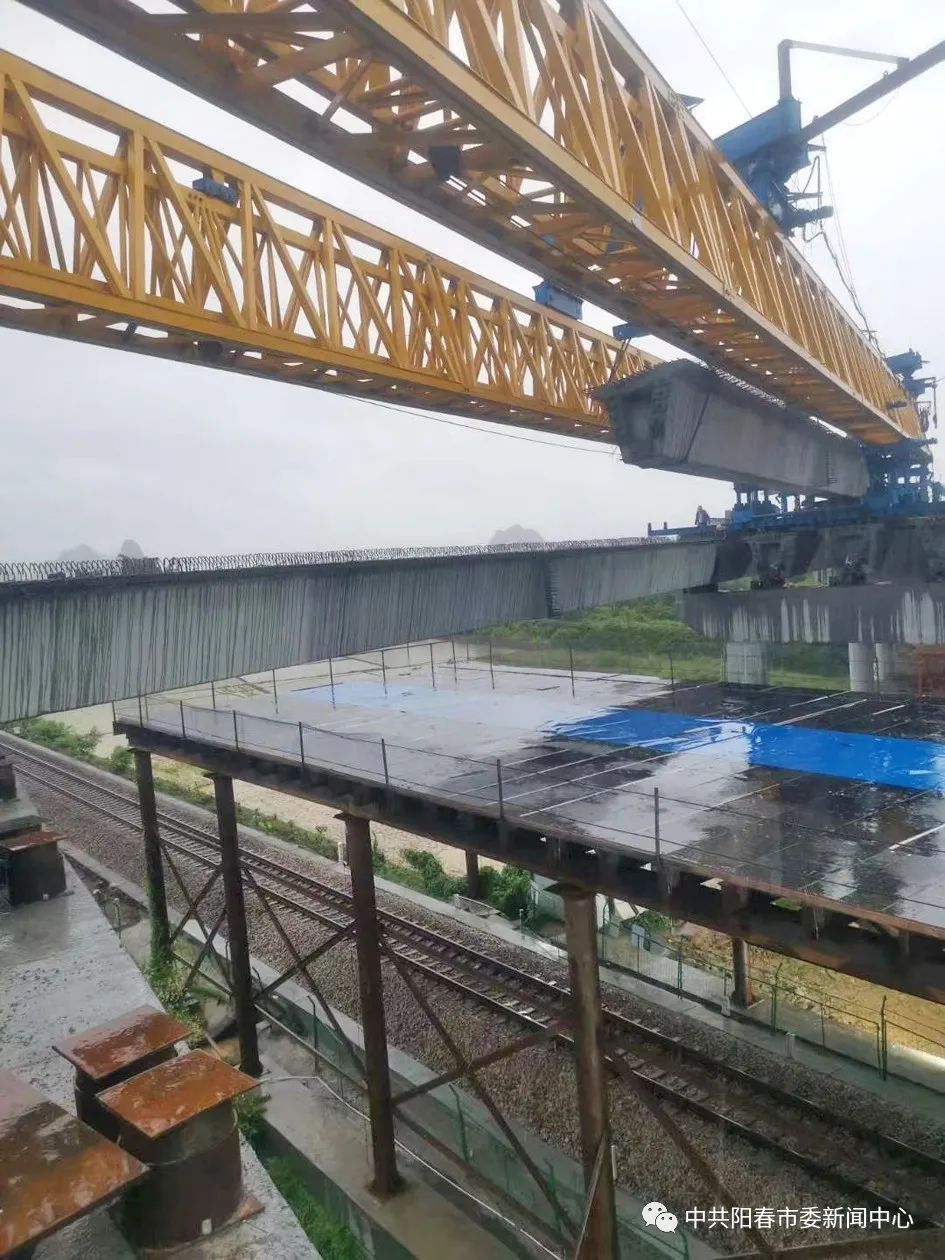 12日上午7点30分,随着指挥员一声令下,架桥机缓缓移动,开春高速TJ08施工段南星高架桥跨三茂铁路最后一片箱梁精准安放到位,这标志着开春高速TJ08施工段向实现年底通车目标又迈进了一大步。