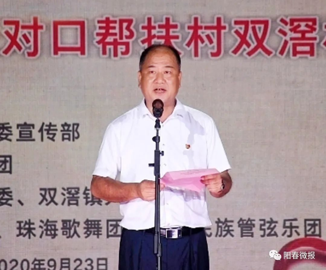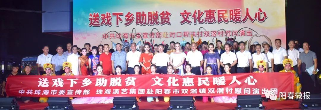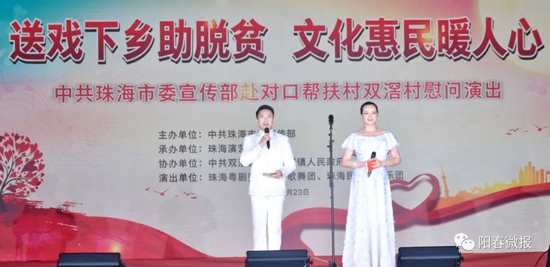 23日晚,阳春市双滘镇文化广场人头涌动,热闹非凡,珠海市委宣传部组织珠海市演艺集团“送戏下乡助脱贫,文化惠民暖人心”对口帮扶慰问演出活动在这里举行。珠海市委宣传部相关领导及当地镇、村干部和群众到场观看了演出。