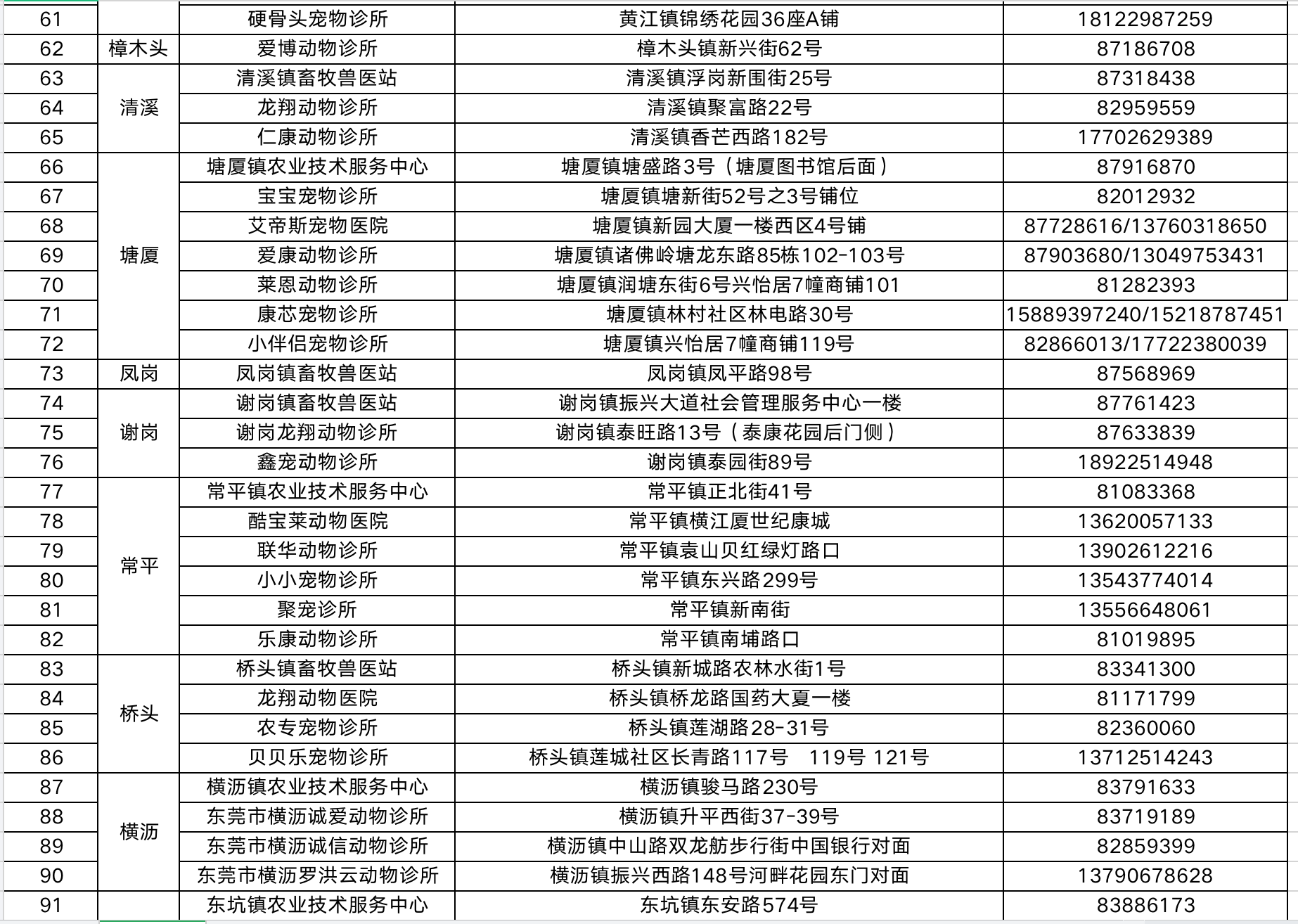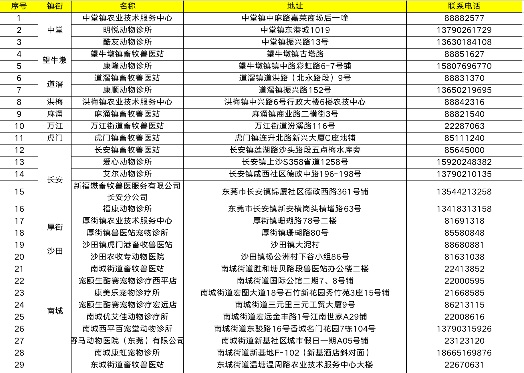 2、大朗镇、樟木头镇、石排镇暂未在当地农业技术服务中心、畜牧兽医站设点。