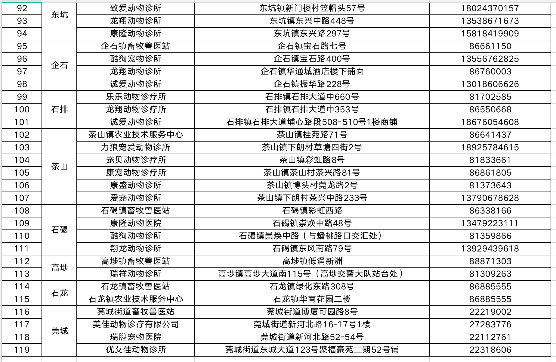 家里有猫咪、狗狗的注意了,东莞市犬猫狂犬病免疫注射点汇总表来了!近日,记者从东莞市农业农村局官网获悉,最新的东莞犬猫狂犬病免疫注射点汇总表已公布,共119个场点可为猫咪和狗狗提供狂犬病免疫注射服务。