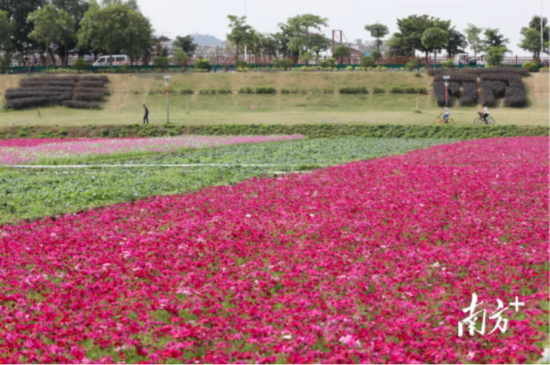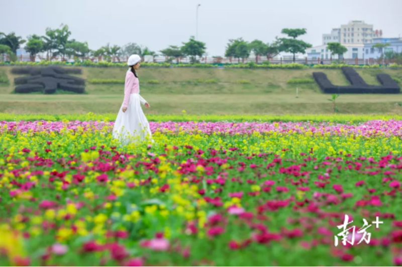现在正值盛花期,这片花海已吸引众多市民前来赏花、拍照,园内还设有古井水塔小景、榕树头休息区等特色乡村景观,为村头增添了一抹别样的风景。