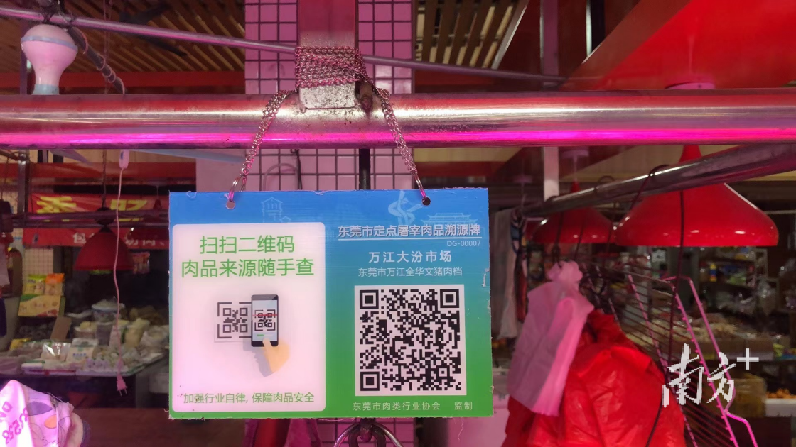 市民通过扫描经营户张挂的“东莞市定点屠宰肉品溯源牌”二维码,便可查询该经营户当天售卖的肉品来源及检疫检验等信息。