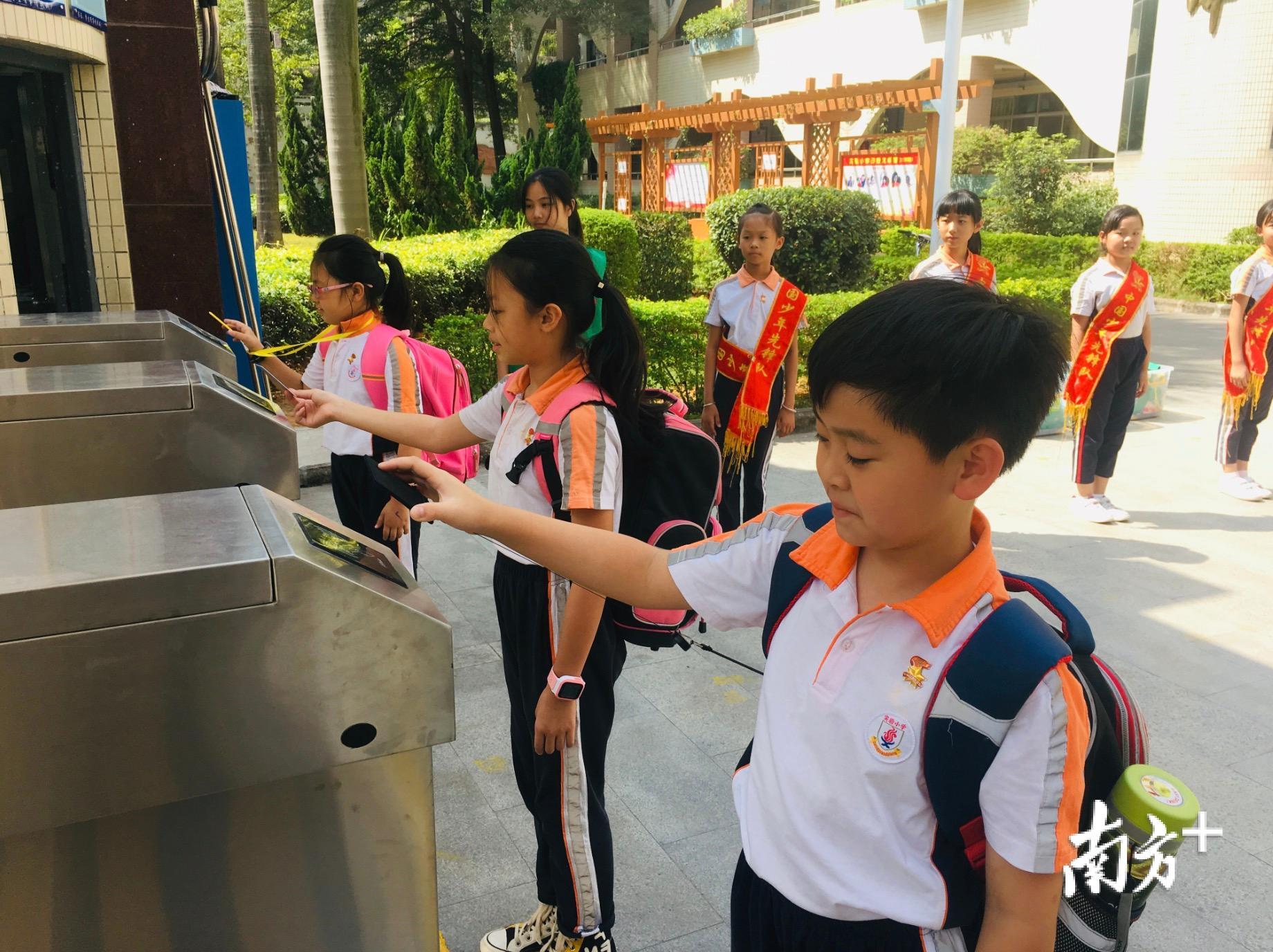 “铃......”清脆的下课铃声响起,大朗镇实验小学的学生们排着整齐的队伍,依次刷卡通过电子通道。从10月21日起,大朗镇实验小学已全面启用智能学生接送卡,学生一人一卡,刷卡确认身份进出校园,安全更有保障。