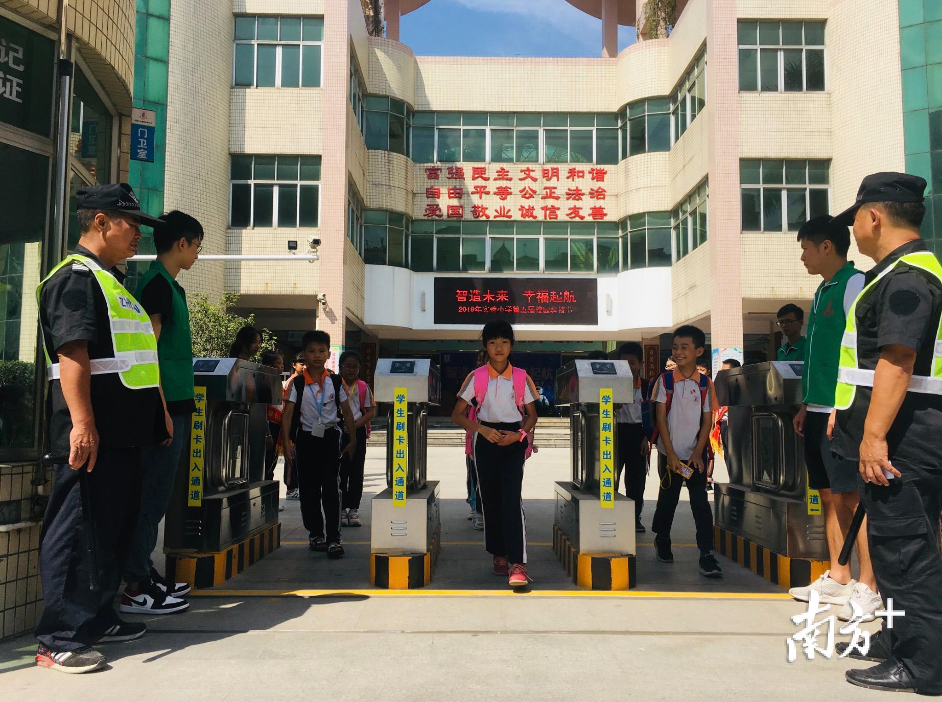 自从大朗加强校园主要出入口三防建设后,各学校一改往日的拥堵无序,校园安全得到更大的保障。在大朗镇实验小学,记者看到前门设有3条刷卡出入校园的通道,上学时两进一出,放学时两出一进,满足不同时间段的不同需求。“我们学校的智能卡分为两种,一种是家长接送用的母卡,另一种是学生进校用的子卡。家长需要遵守一卡一人的接送制度,刷卡确认身份才能进出校园,到教室签了名才能接走学生,这样子安全性会更高。”实验小学校长赖向忠向记者介绍道。