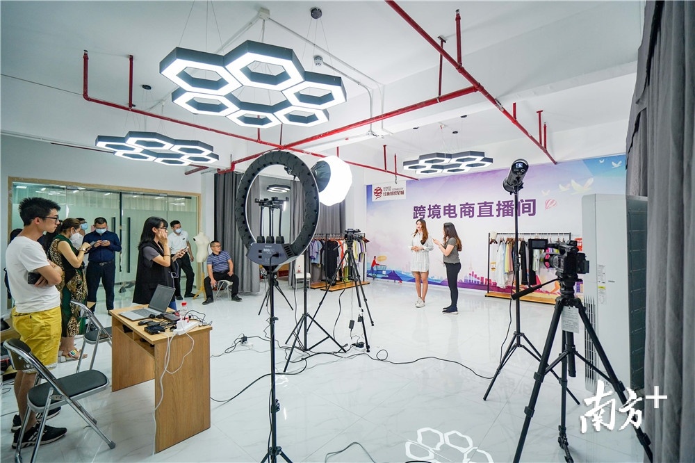 在当天活动中,东莞桔梗物语、东莞奕尚服饰、大朗海致服装等8家企业,依托服务中心设置的电商直播间开展了跨境电商直播,专业主播通过多语种向东南亚等地的客户进行产品推介。