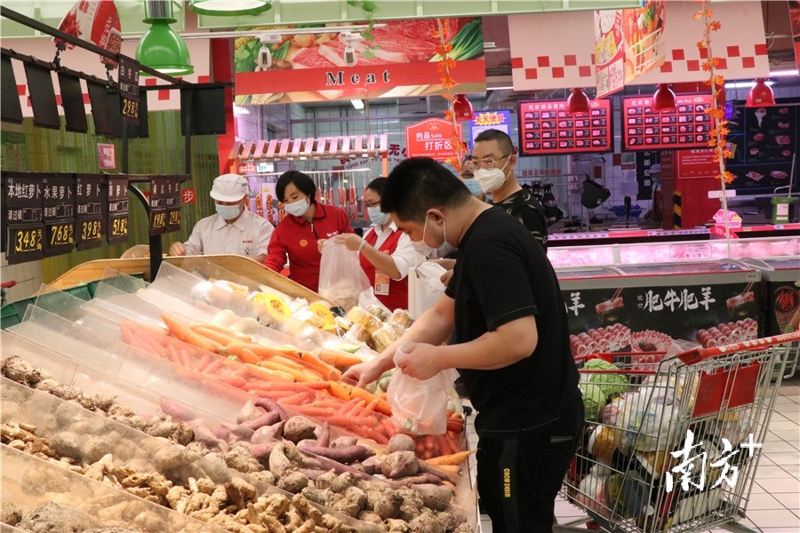 “目前的菜价和肉价基本上和前十天都是一样的,没有什么波动。而且像肉类因为在搞促销,甚至还便宜了一点。”在大润发大朗店,客服部经理陈磊戈告诉记者,近期老百姓需要的肉蛋蔬菜、米面粮油、生鲜水产等生活所需,供应渠道一直保持畅通。