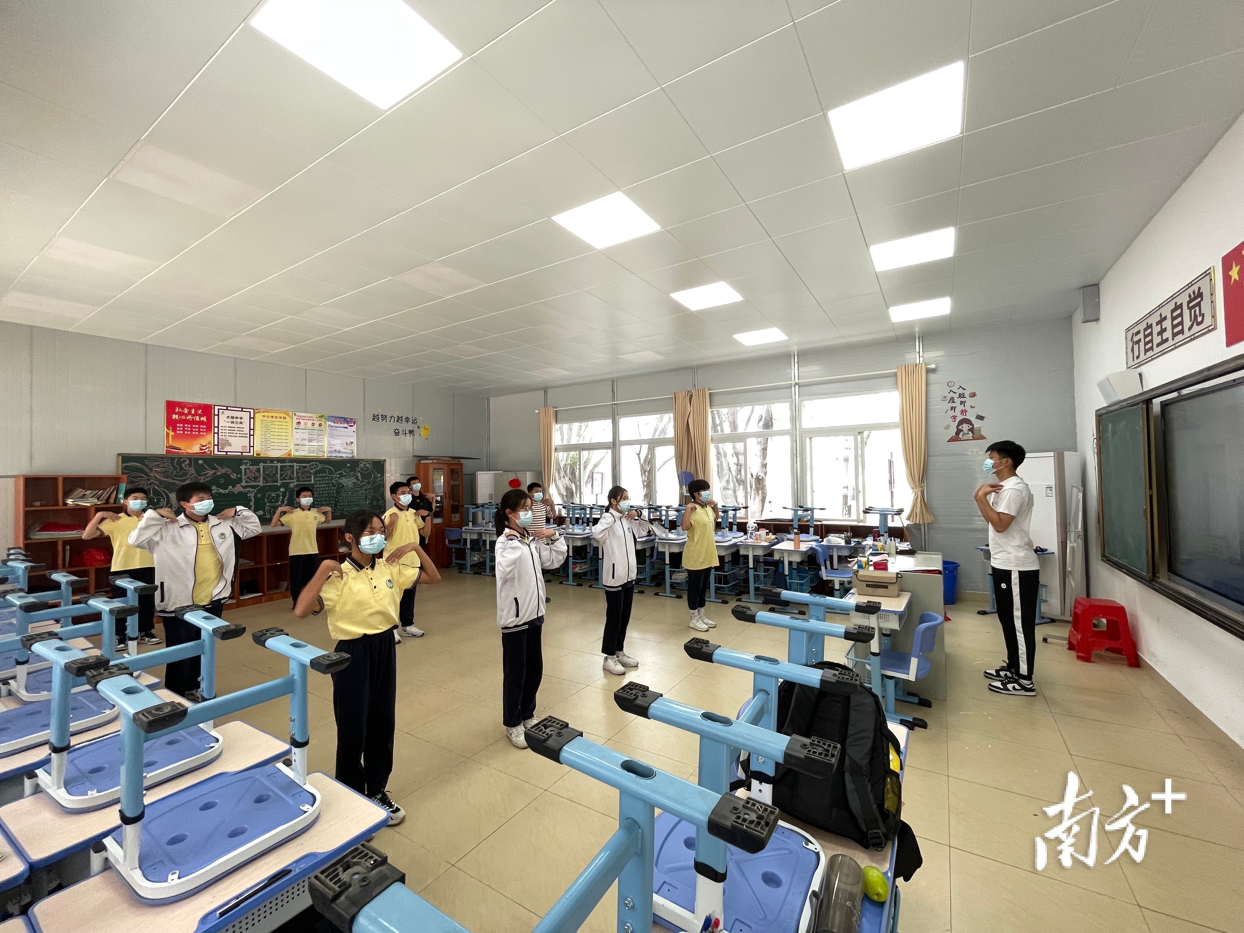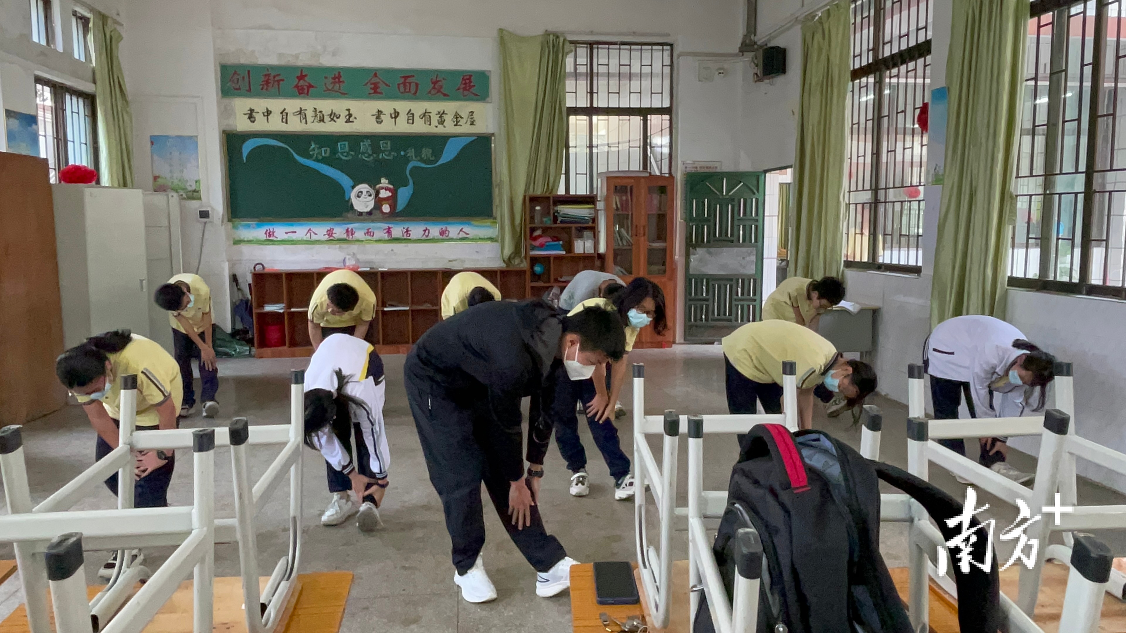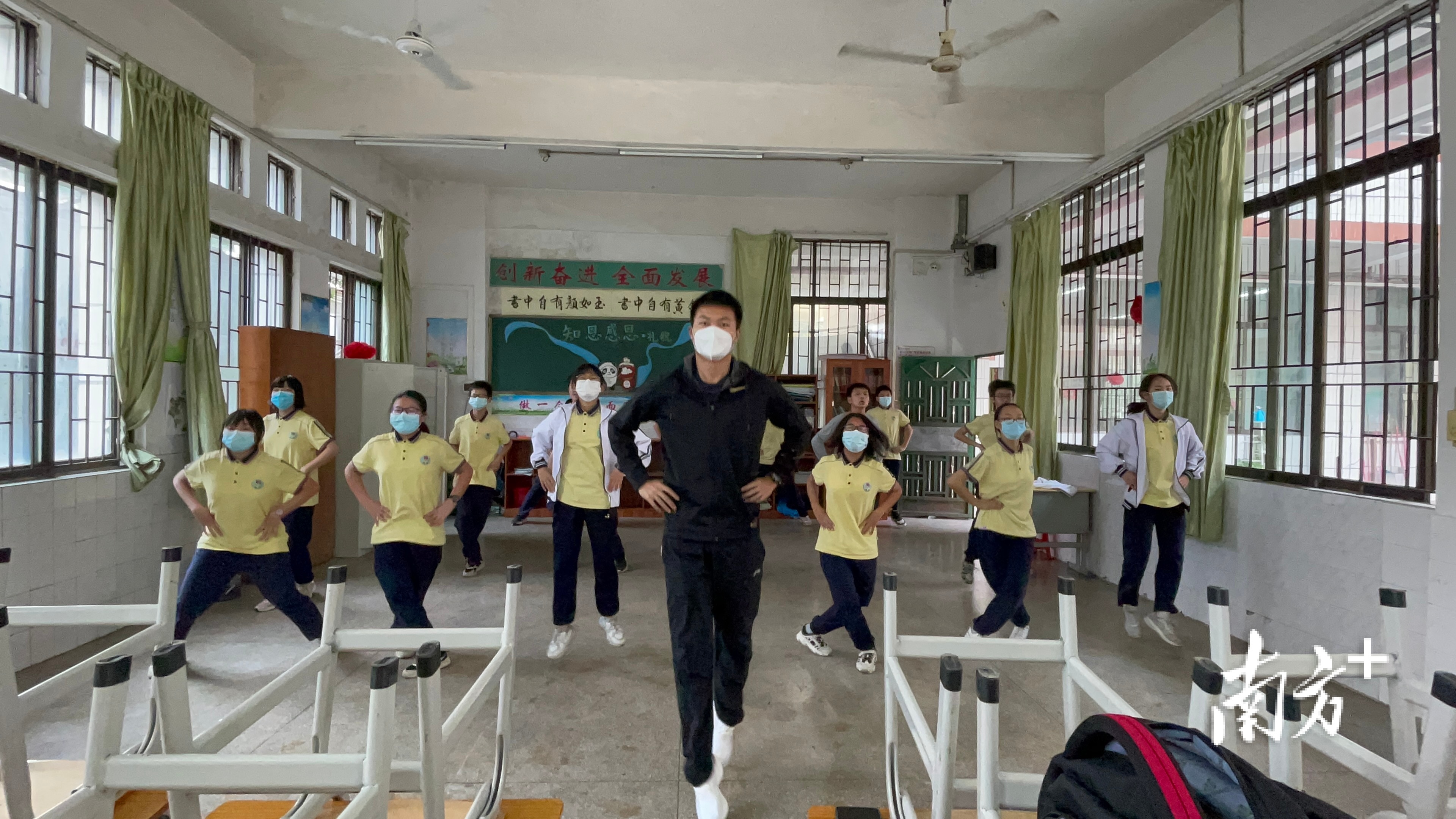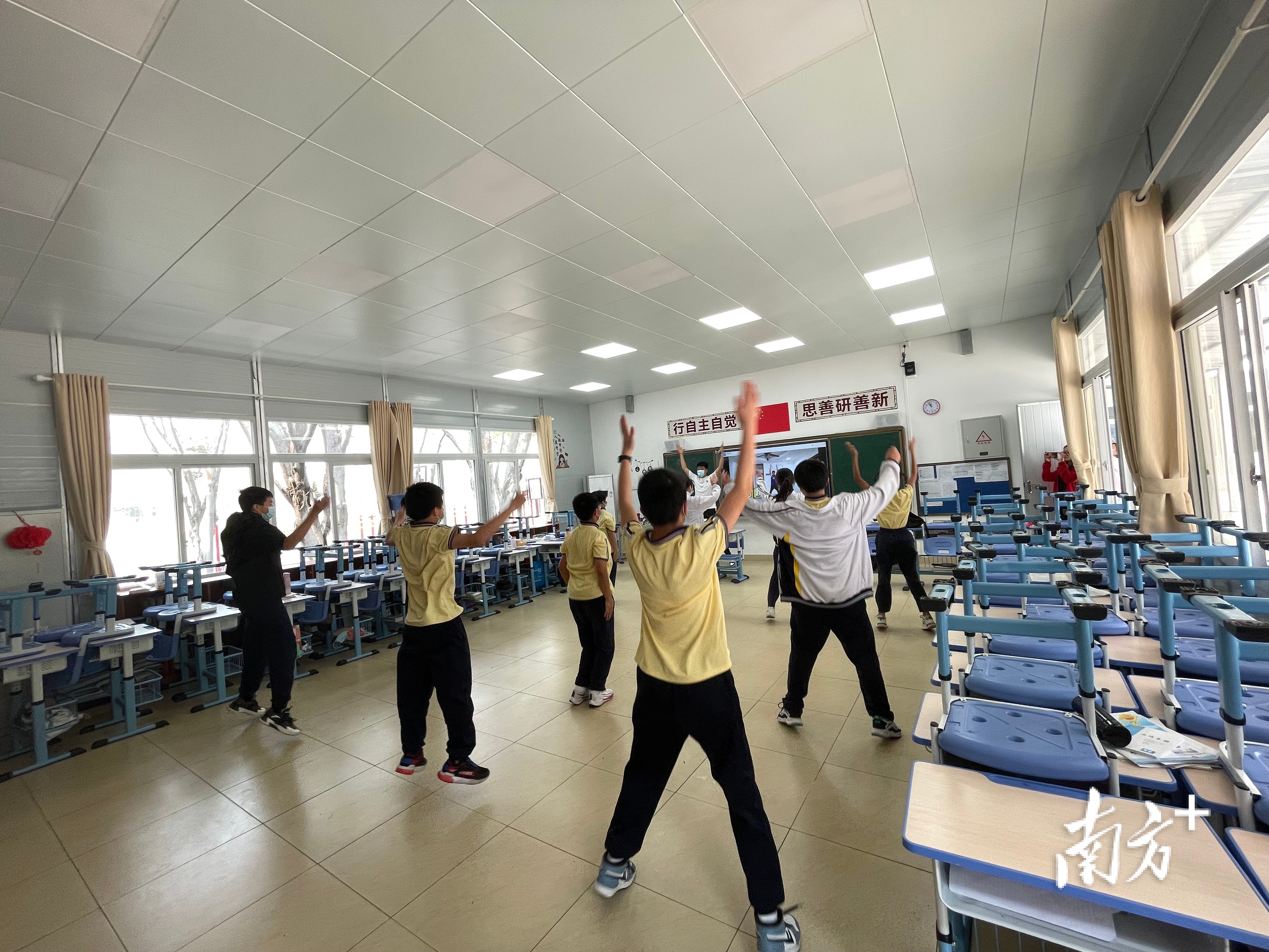 如今,在大朗中学的课室里不时传出欢快富有节奏感的音乐声,老师和学生们在教室里跟着蔡健和老师的示范指导视频一起舞动,青春洋溢,活力十足,释放了心情也强健了体魄。