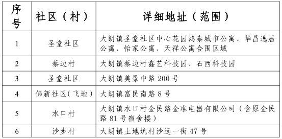 关于大朗镇6个封控区域解除封控管理的通告