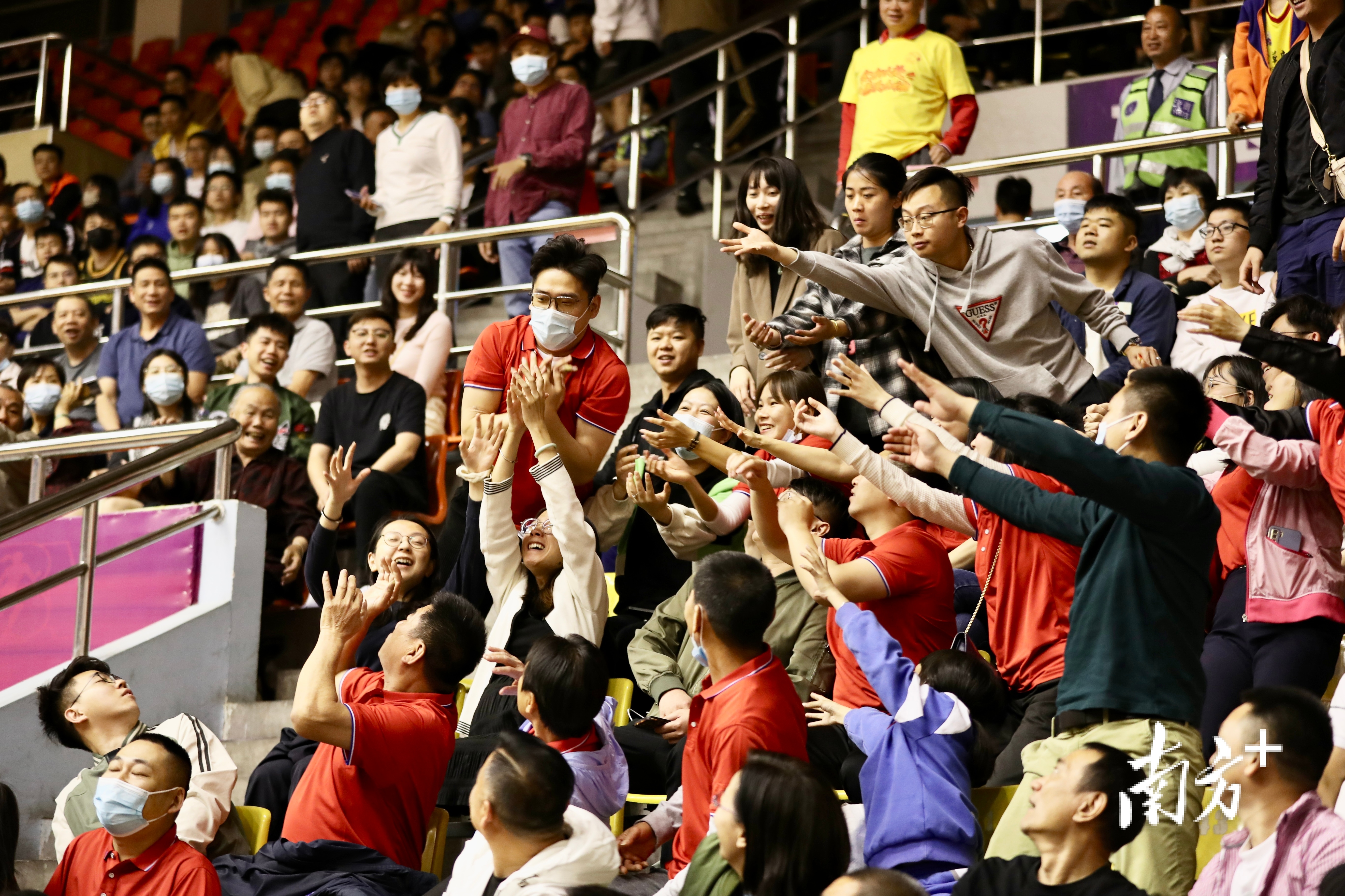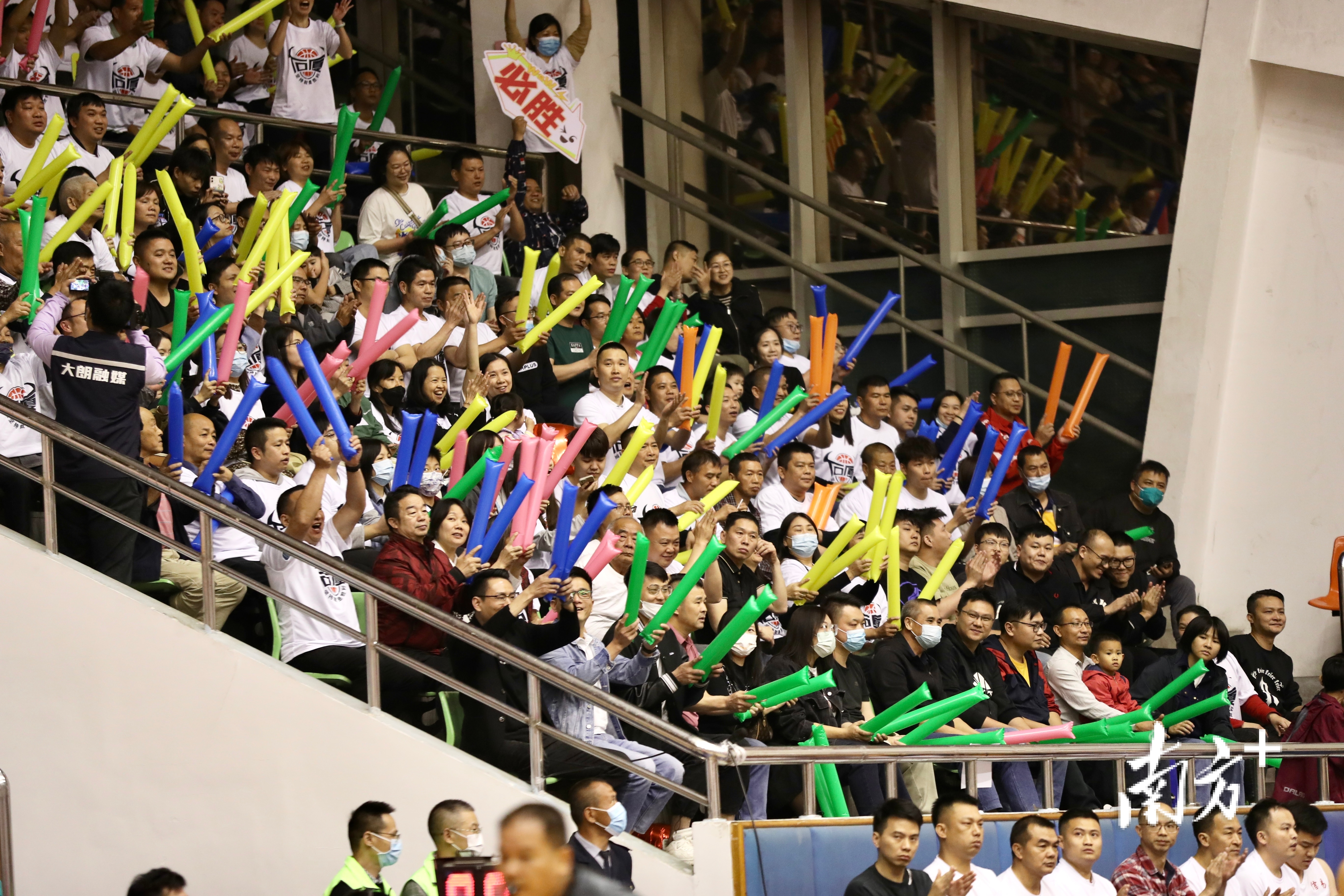“防守!防守!”“必胜!必胜!”“加油!加油!”……当天晚上,大朗体育馆里重现了往日的热闹,观众席上座无虚席,现场观众热情高涨,助威声、喝彩声此起彼伏。赛场上,球员们用精湛的球技为观众上演了精彩比赛,现场掌声阵阵,叫好声不绝于耳,氛围感直线拉满。