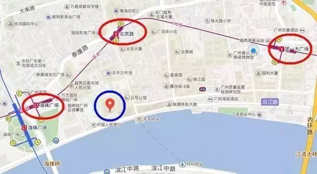 在广州市越秀区南堤二马路36号广东工人文化宫3楼。蓝圈位置为广东省工人文化宫地址,红圈为附近地铁站。
