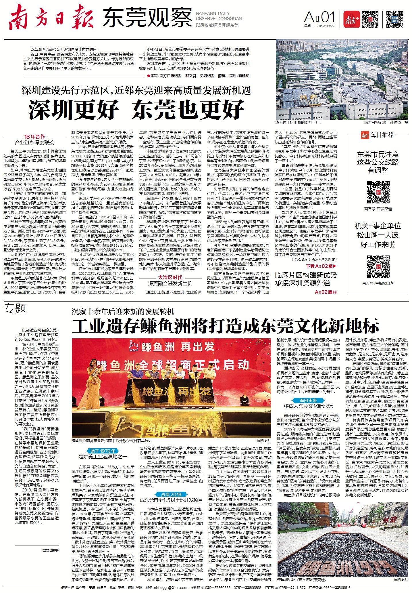 2019,鳒鱼洲,再出发。在粤港澳大湾区发展的新机遇下,在东莞市委、市政府“湾区都市、品质东莞”的目标指引下,鳒鱼洲将成为东莞文化新地标,向世界展示东莞的工业创造力和文化感召力。