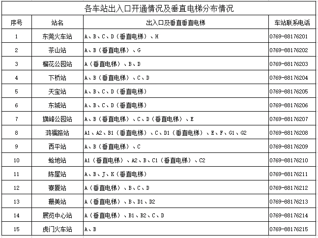 4.乘客如遇出行不便,可使用“贴心服务、爱心相伴”服务,提前拨打地铁站电话(各地铁站出入口、垂直电梯、客服中心均有张贴)进行预约出行。各地铁站出入口开通情况及垂直电梯分布情况,如下:
