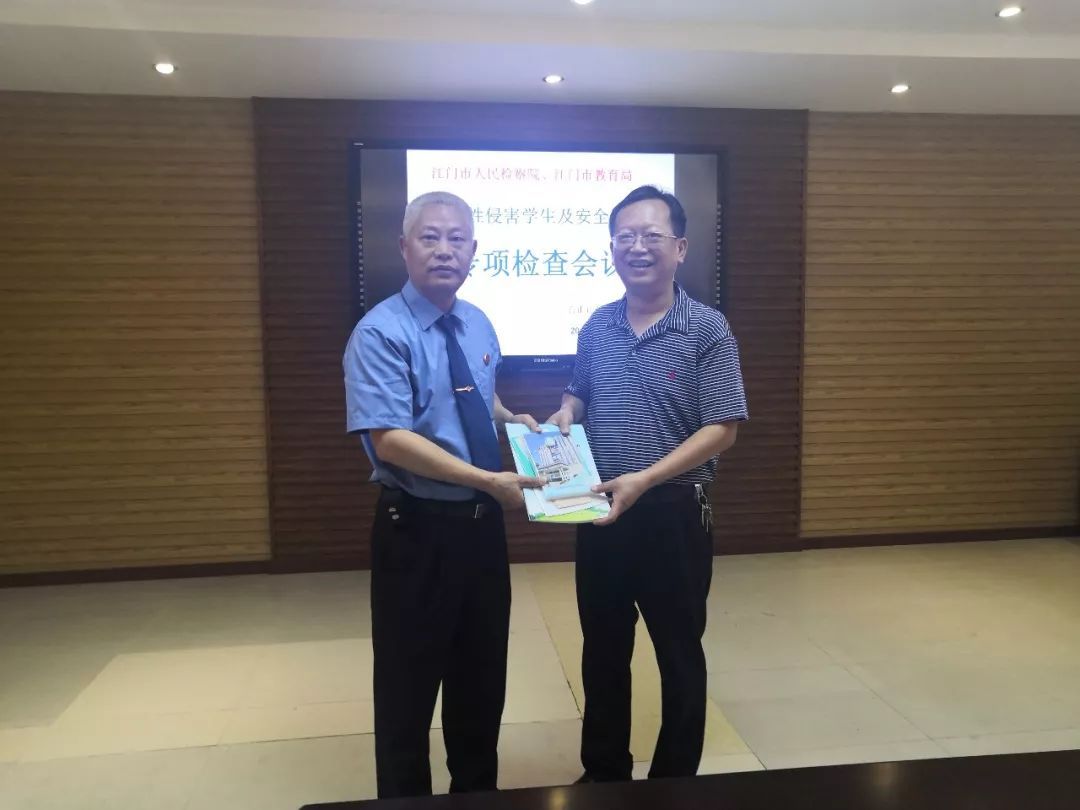 会后,检查组向市教育局及台山二小赠送了法治宣传资料。
