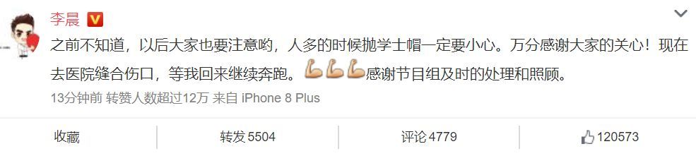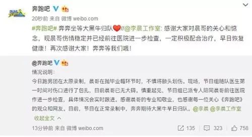 《奔跑吧》节目组也发文确认了李晨受伤的消息