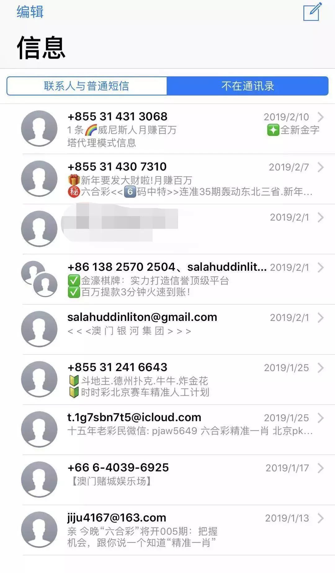 永远是各式各样的垃圾短信