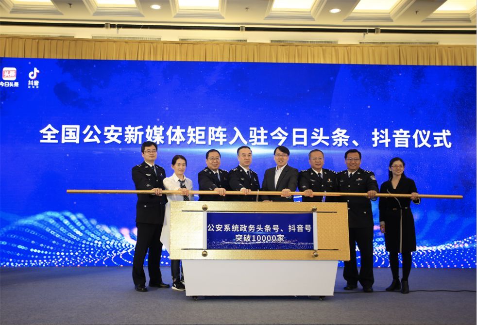 公安部新闻宣传局党委书记、局长战俊,字节跳动副总裁陈志锋共同宣布全国公安新媒体矩阵入驻今日头条、抖音。