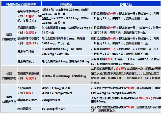① 短效口服避孕药:适用于短期避孕,一旦停用,即可恢复每月排卵,同时在停药后出现一个正常月经周期后即可怀孕;