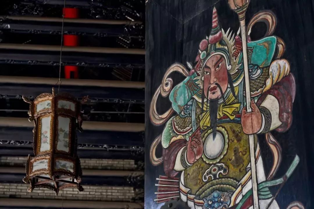 祠堂前广场两侧,一对活泼可爱、神态祥和的石狮子安然坐落,便是采用上等的花岗石雕琢而成的;正门两扇大门上,一边是红脸的秦琼,一边是黑脸的尉迟恭,气宇轩昂,神情威严,这两个门神图案便是彩绘,即便历经风雨,依然艳丽如新。