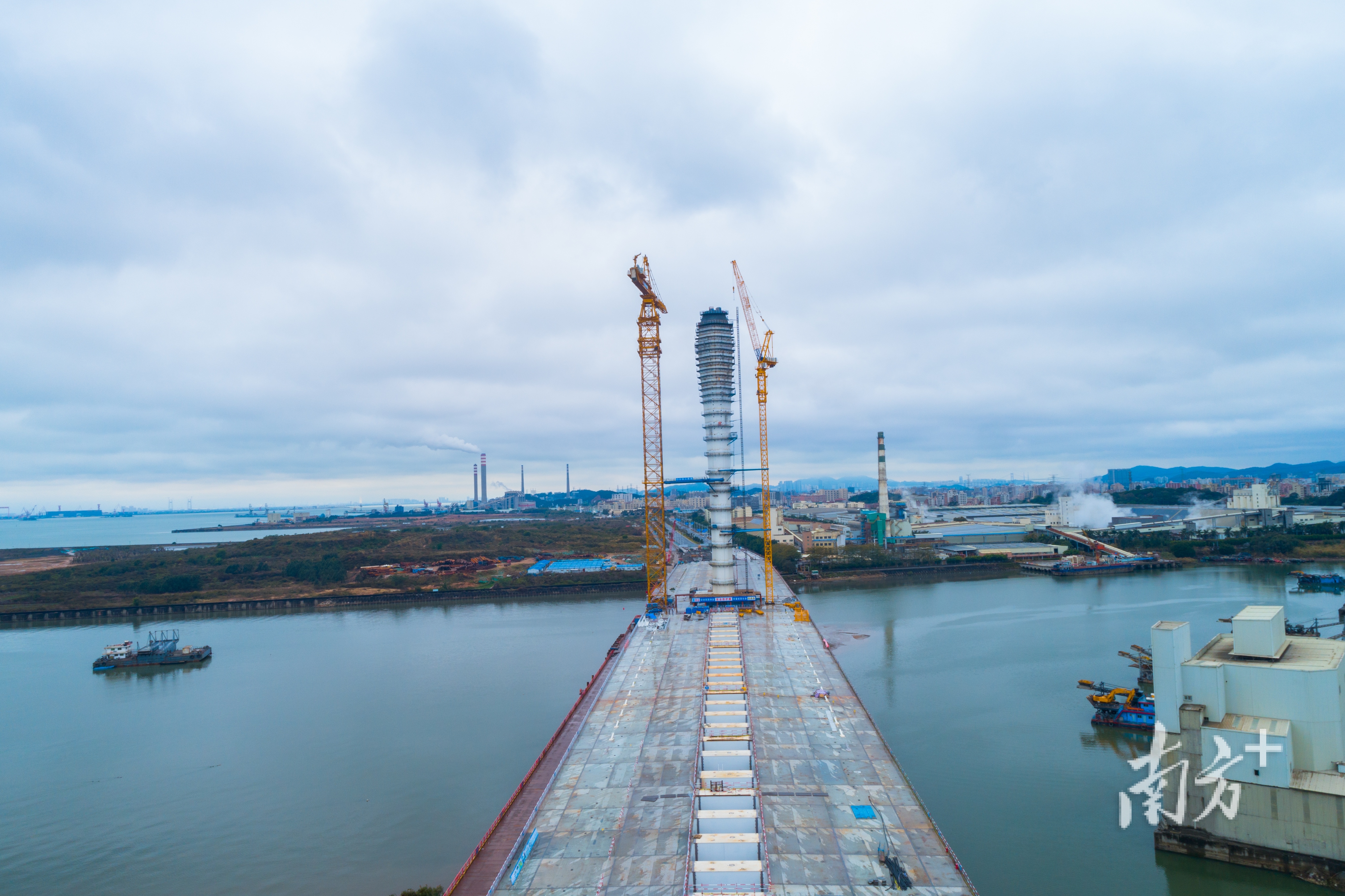 “滨海湾大桥的主塔为双曲面,施工建设难度大,但我们尽力克服困难,力争早日建成通车。”站在磨碟河口的项目现场,滨海湾大桥总工程师康宇飞立下“军令状”。从首节钢塔安装,到主梁结构贯通,再到133.4米钢塔主体结构安装完成,在过去一年,该项目捷报频传。