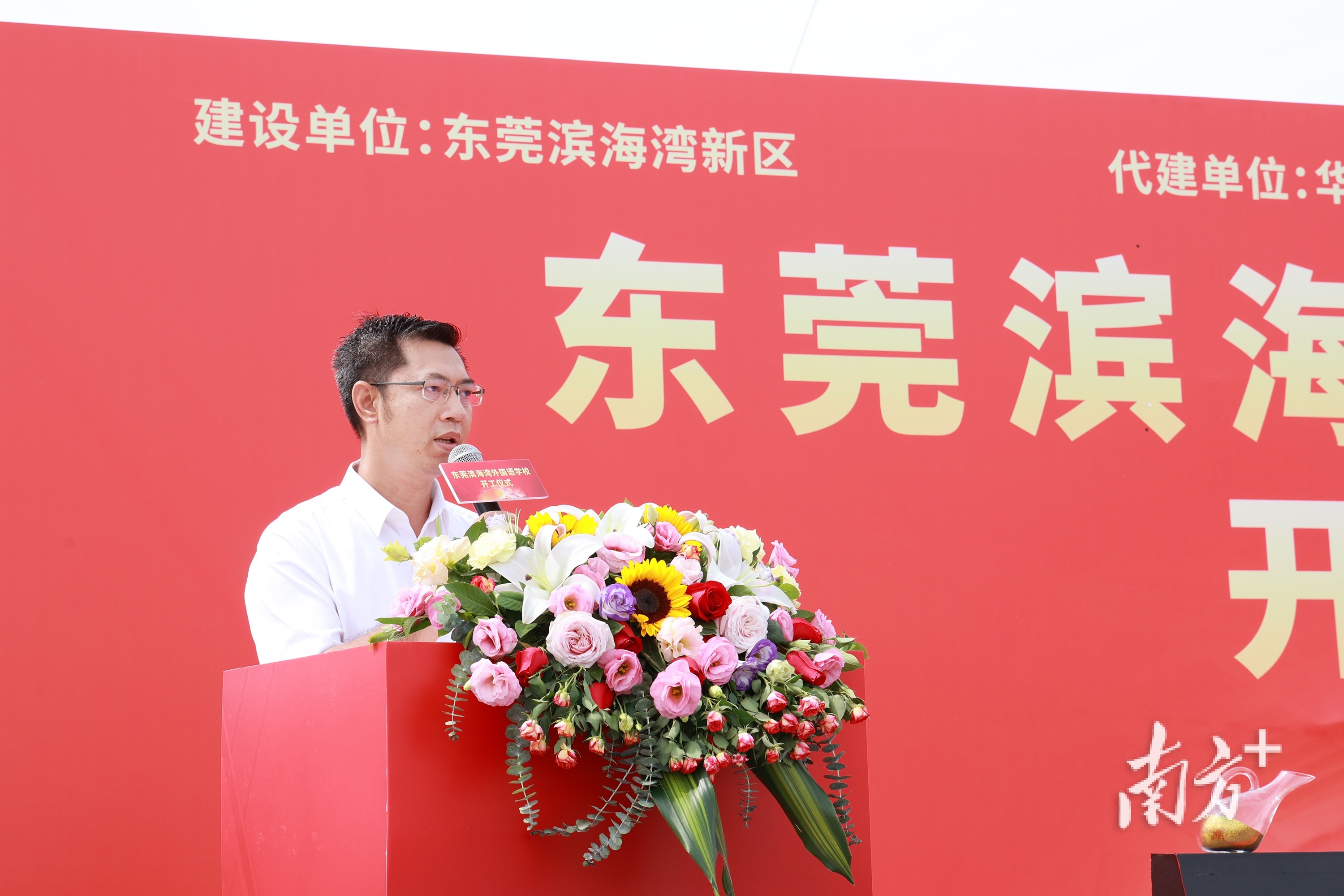 华润置地东莞公司副总经理严云锋、中建八局湾区公司副总经理陈飞分别上台致辞,表示将高标准、高水平推进建设,与滨海湾新区合力将学校打造成区域一流名校,确保按期建成并交付使用。