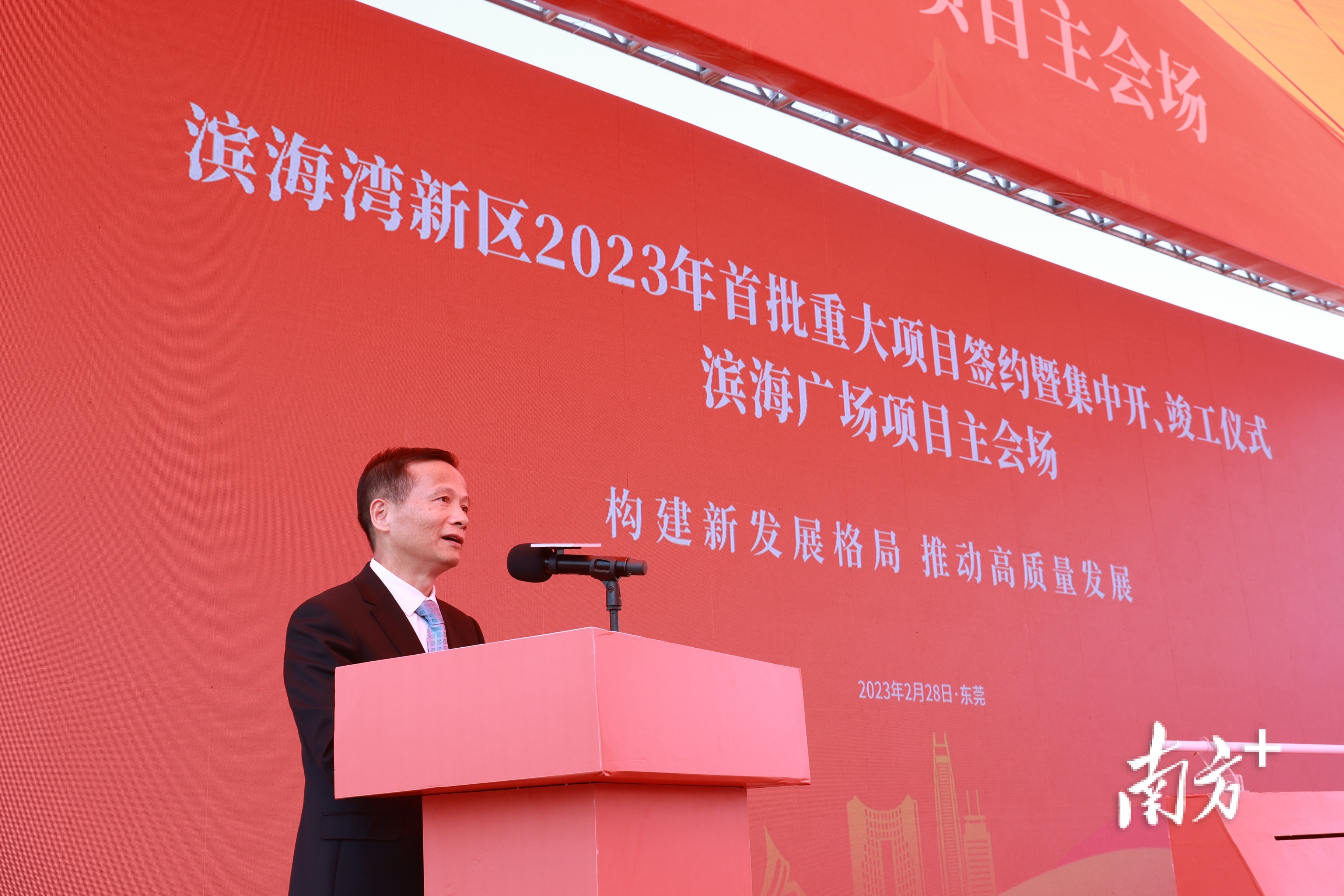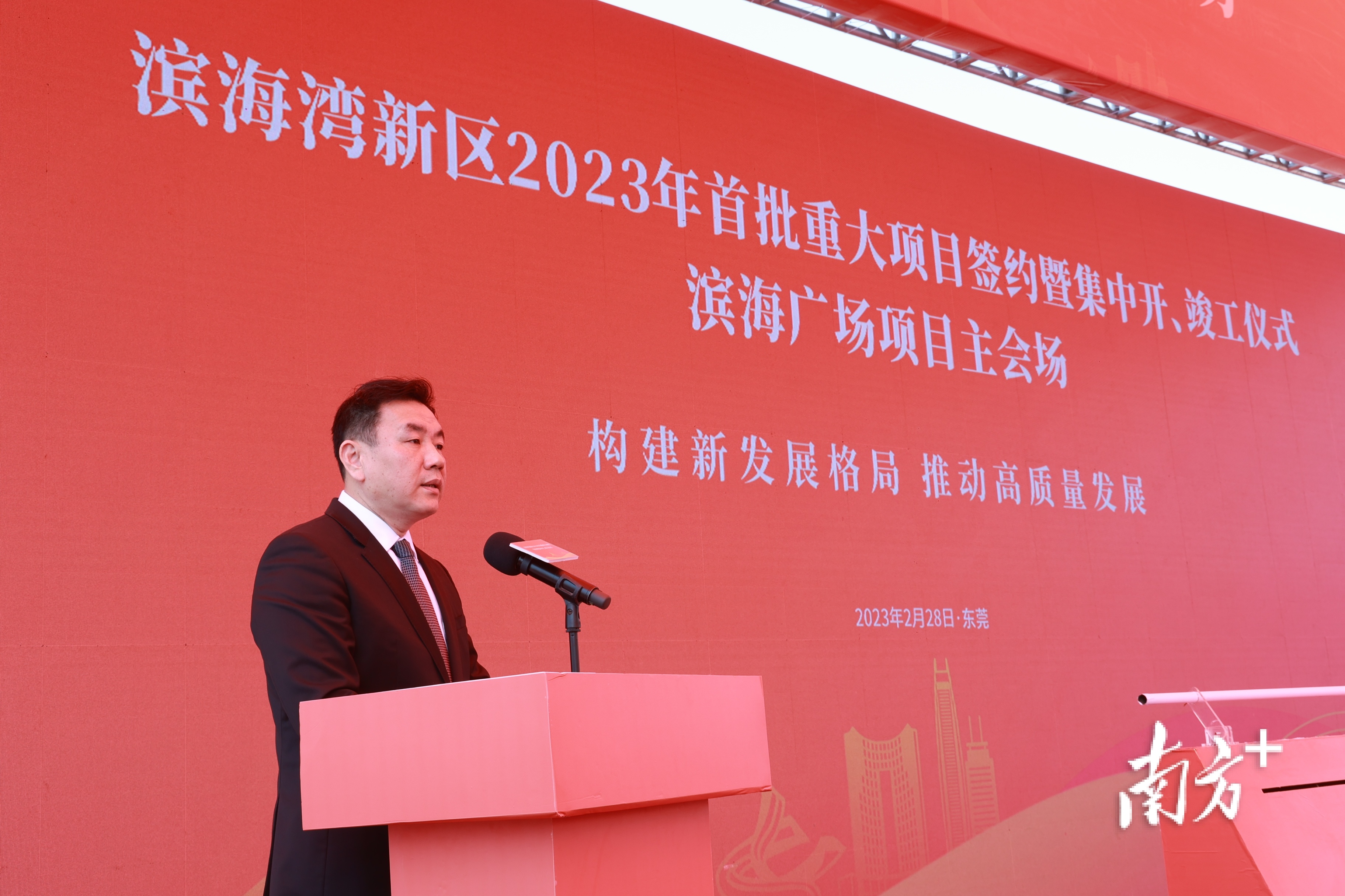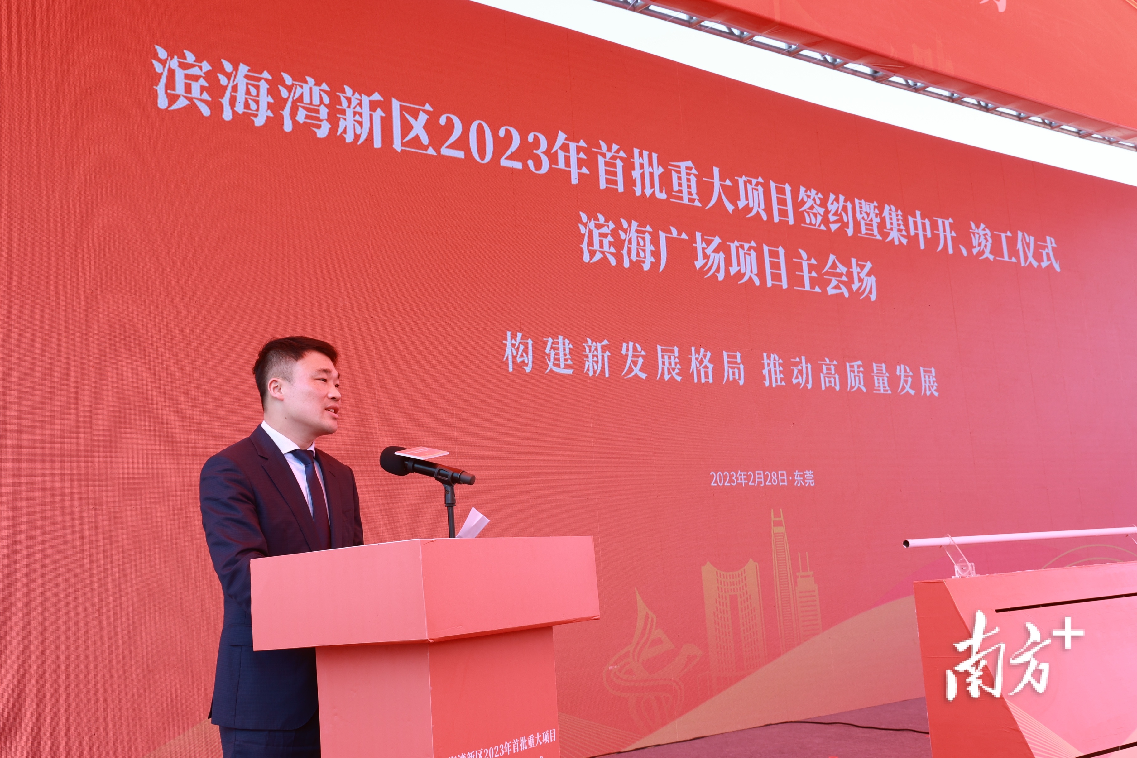刘光滨在致辞中表示,作为代表东莞深度参与大湾区建设的重大平台,滨海湾新区位于“黄金内湾”的A字顶端,承载着独特的区位优势和巨大的发展潜力。随着一批重大项目建成、一批重大项目开工建设,滨海湾新区的平台承载力、人才吸引力、整体竞争力将进一步提升。希望滨海湾跑马争先、大干快干,奋力打造成为东莞开放新窗口、产业新空间、增长新引擎、城市新名片。